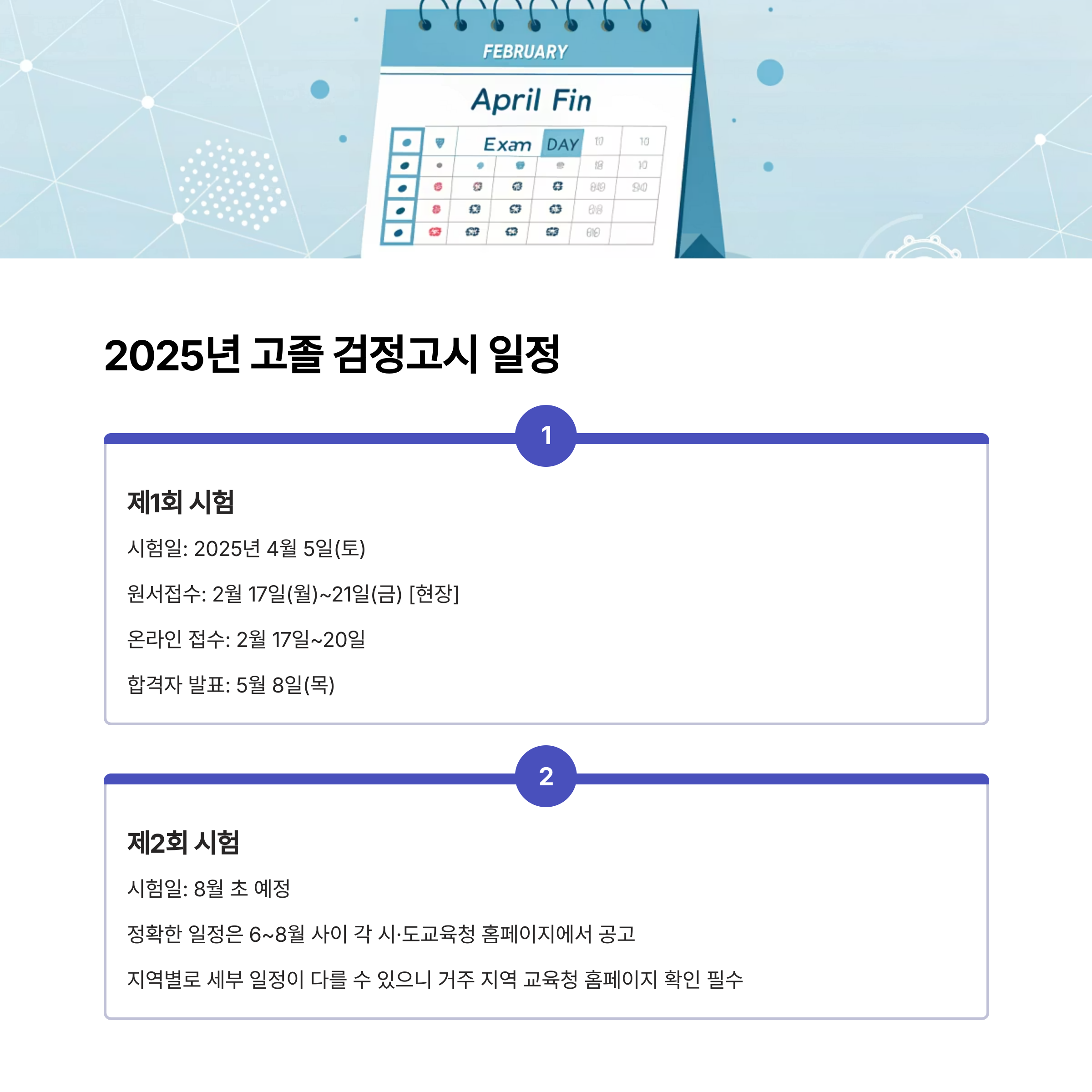 1. 2025년 고졸 검정고시 일정 한눈에 보기