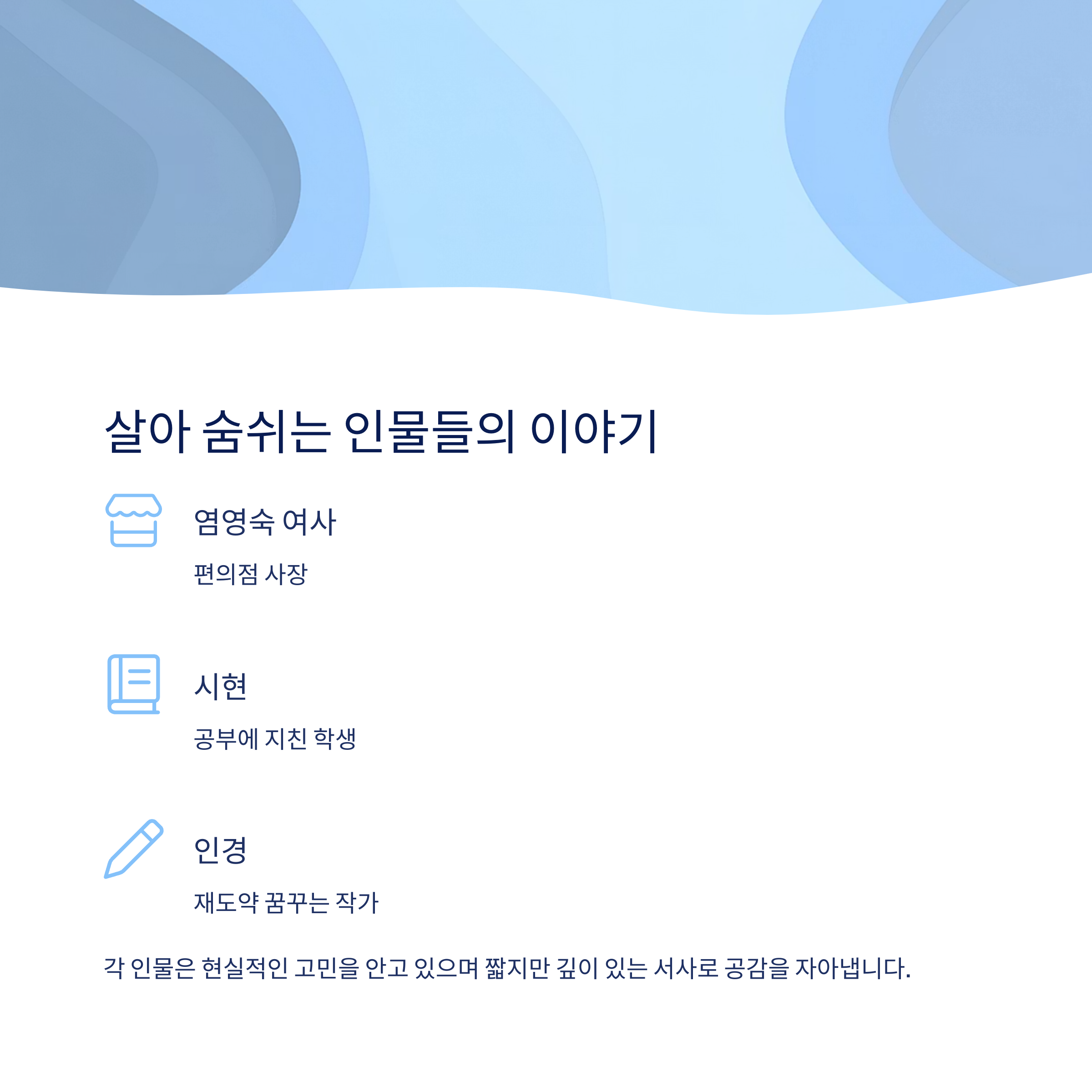 그들의 서사는 짧지만 깊이 있게 그려져 독자의 공감을 자아냅니다.