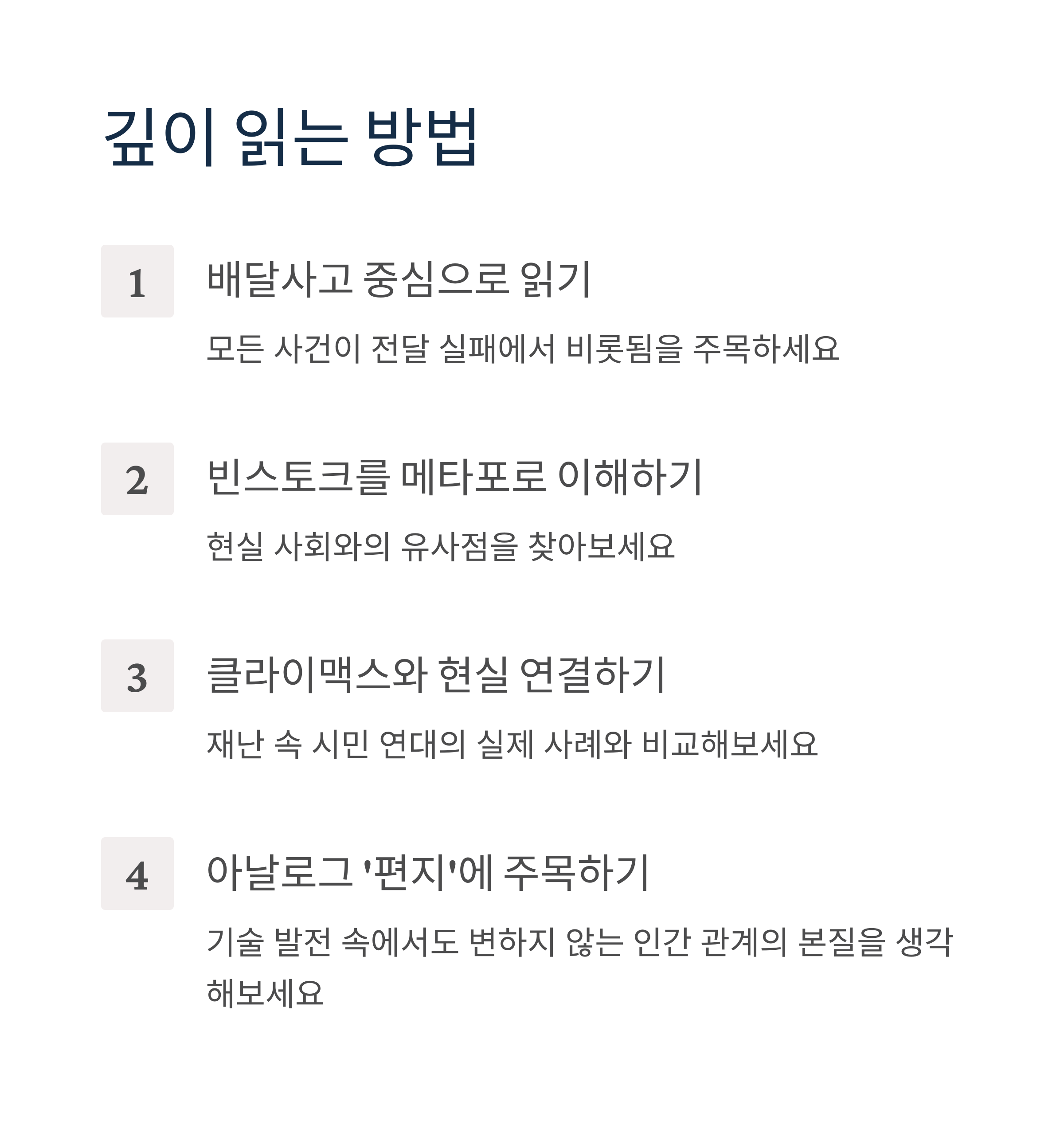 《타클라마칸 배달사고》를 깊이 읽는 팁