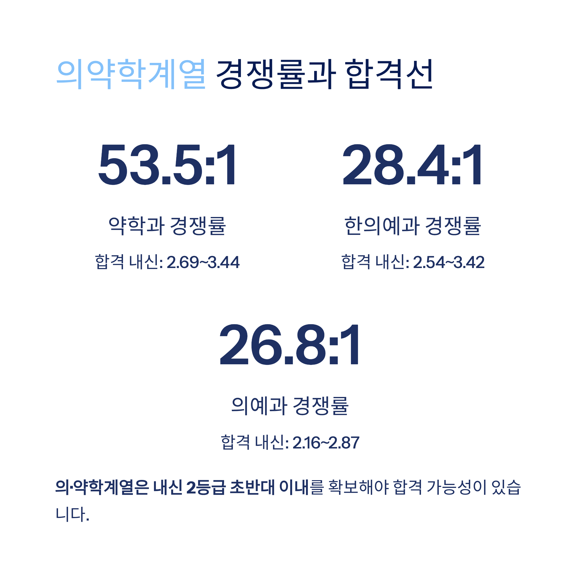 • 의·약학계열: 2등급 초중반 → 상위권 학생 위주