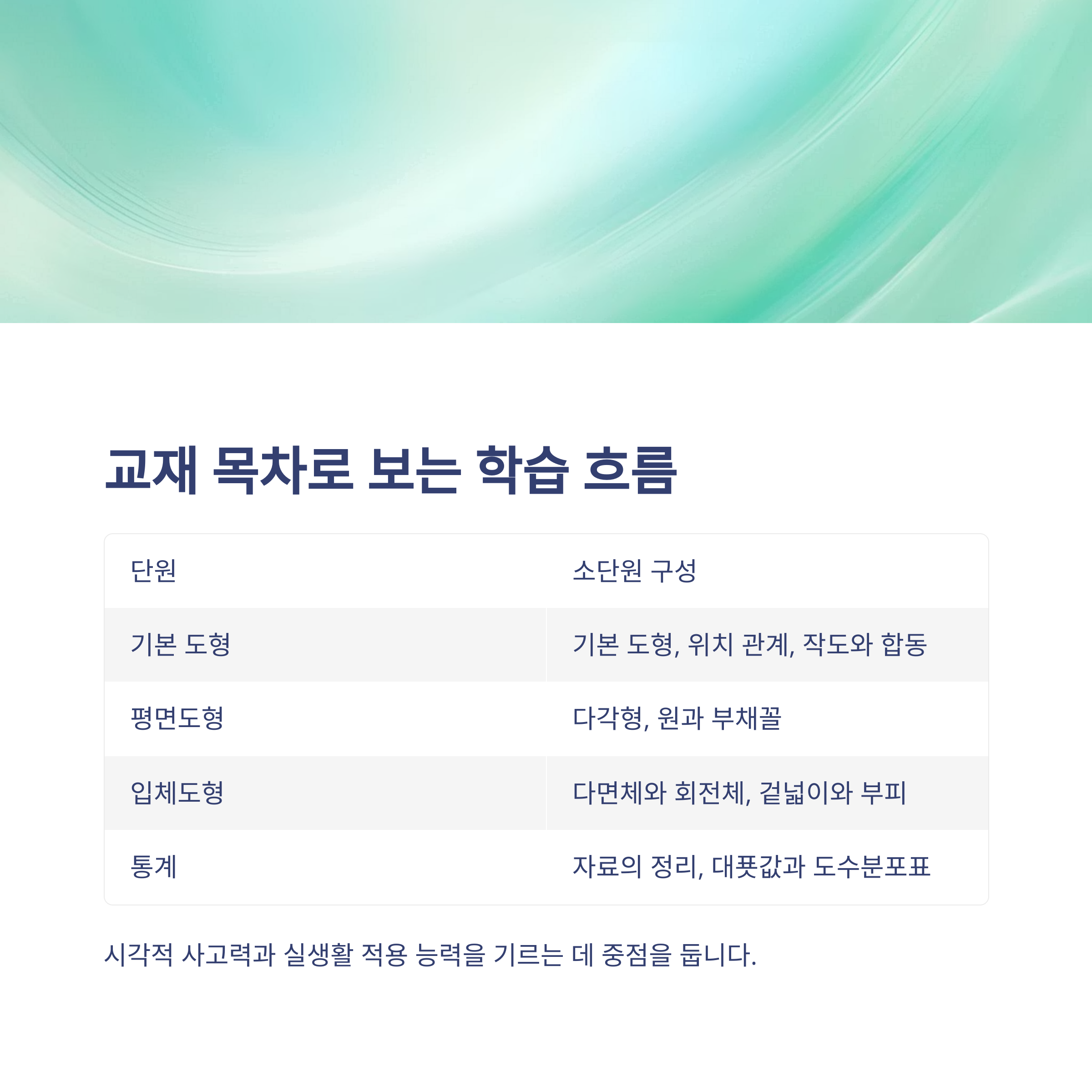 시각적 사고력과 실생활 적용 능력을 기르는 데 중점을 둡니다.
