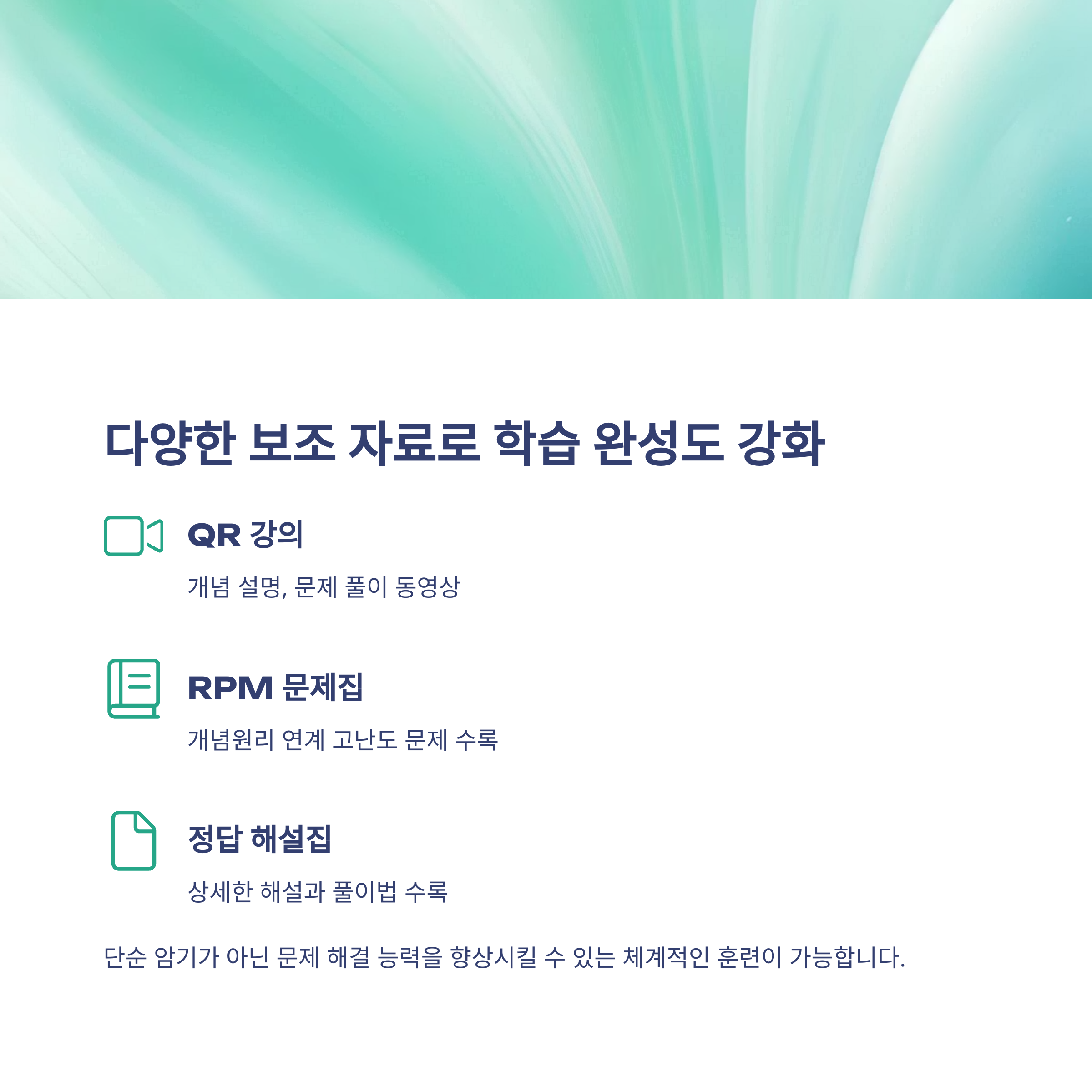 RPM 교재와의 연계 등 다양한 형태의 보조 자료를 제공합니다.
