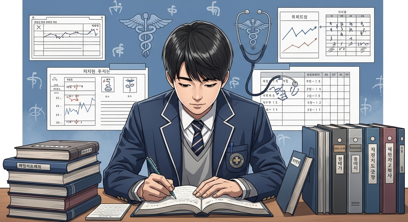 - 내신 조기 관리: 자기소개서가 폐지되면서 정량 지표인 내신의 중요성이 더욱 커졌어요. 1학년부터 4.0/4.5 이상을 꾸준히 유지하는 것이 핵심입니다. 단순히 높은 점수를 넘어, 관련 교과 성취도를 통해 의학 분야에 대한 관심을 보여주는 것이 좋아요.