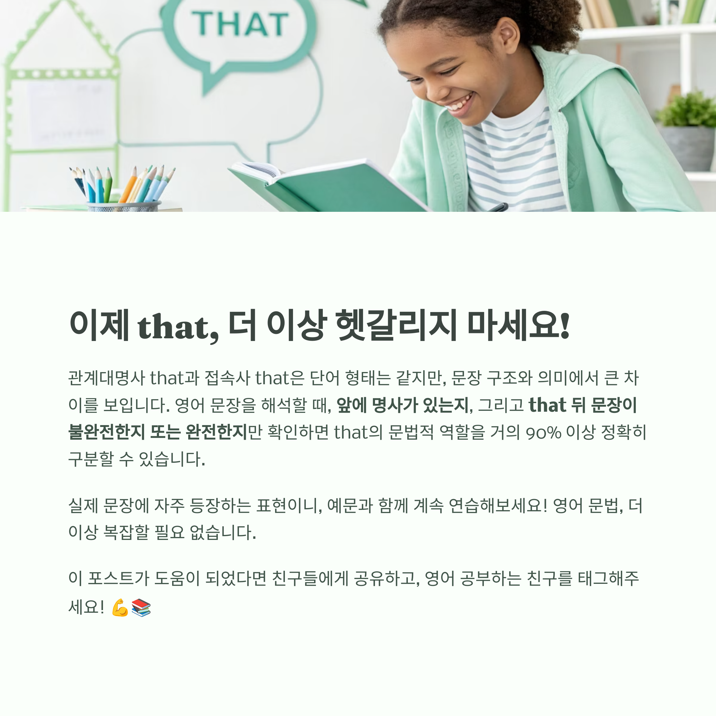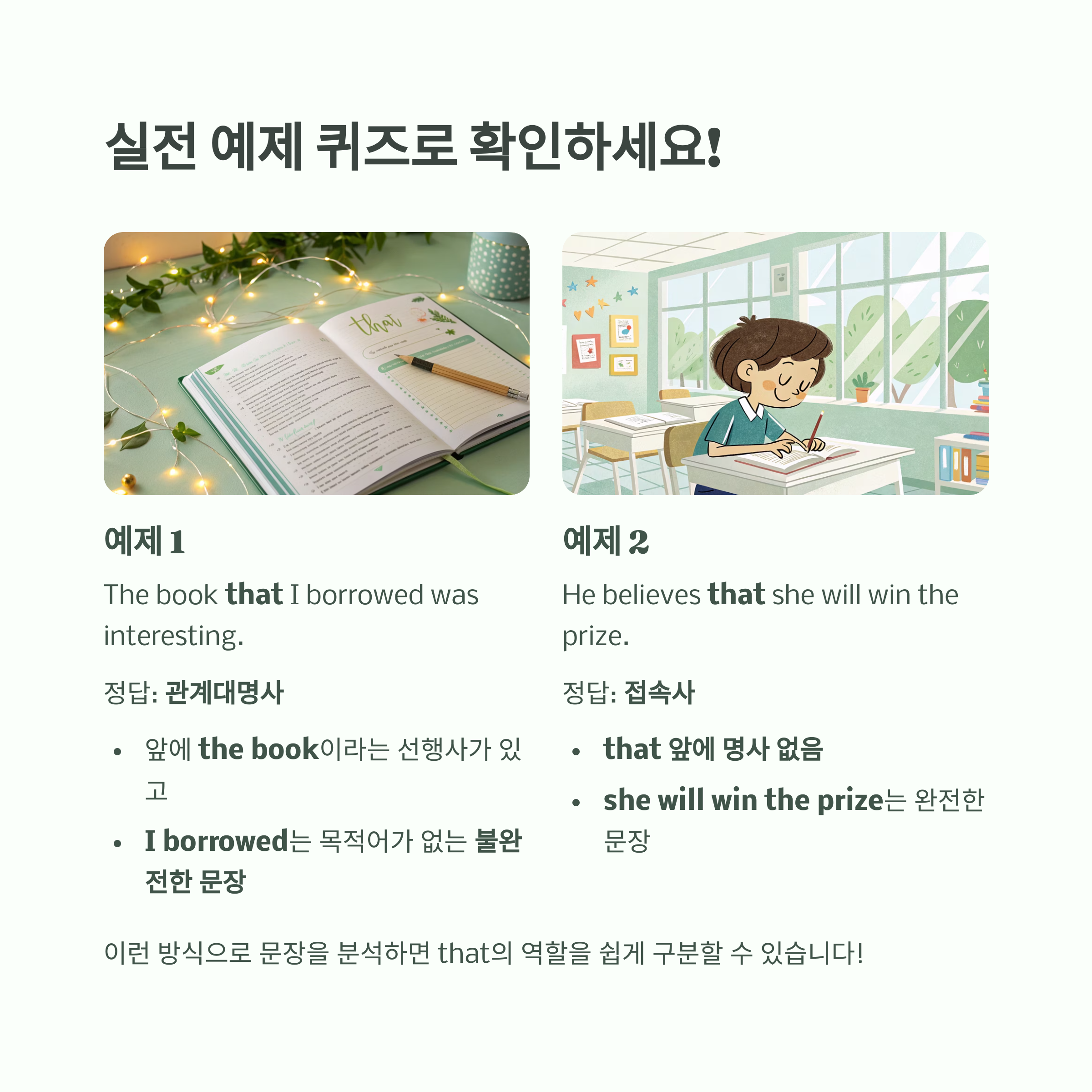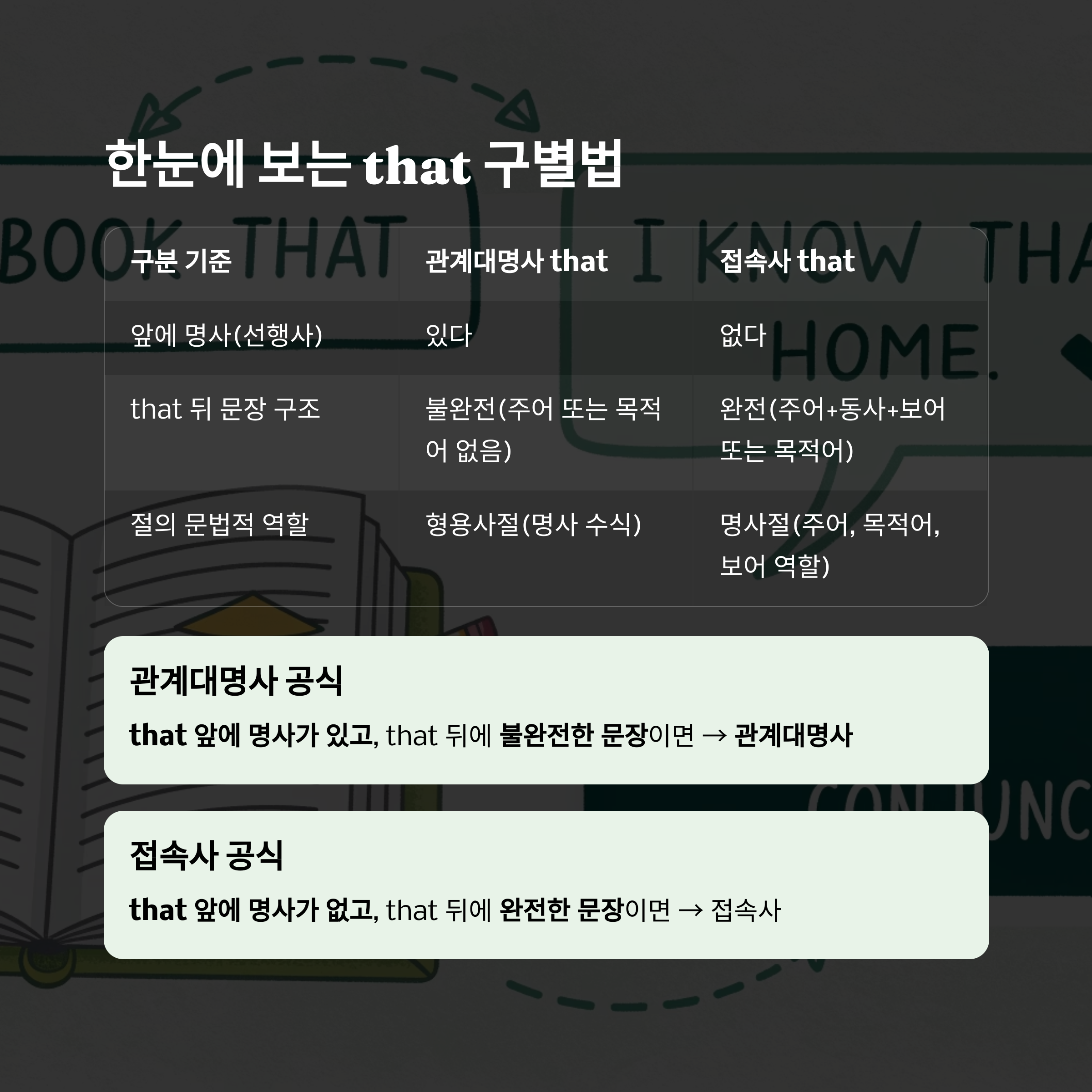 이제 관계대명사 that과 접속사 that, 더 이상 헷갈릴 일 없겠죠?