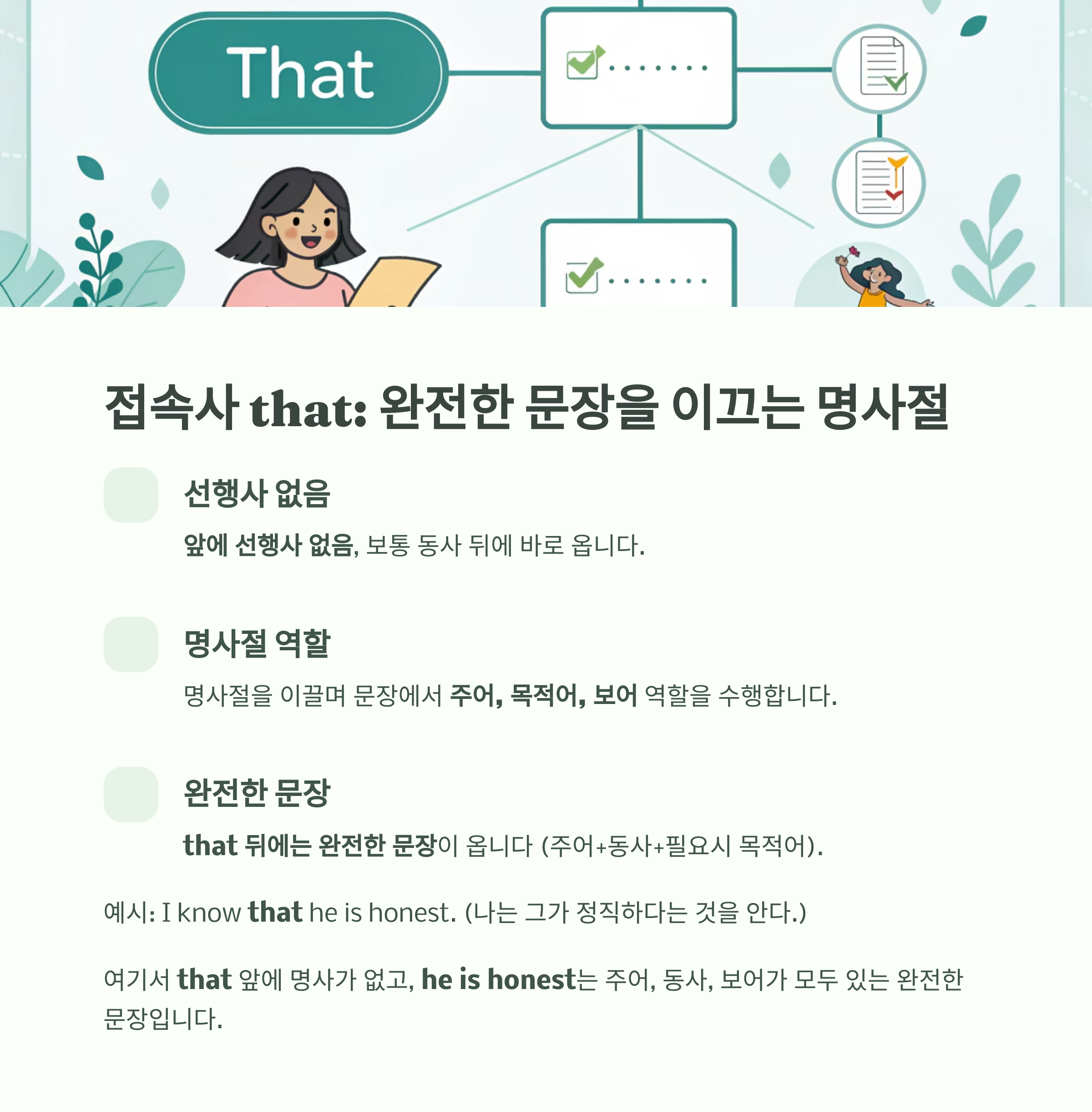 ✅ 접속사 that의 핵심 특징