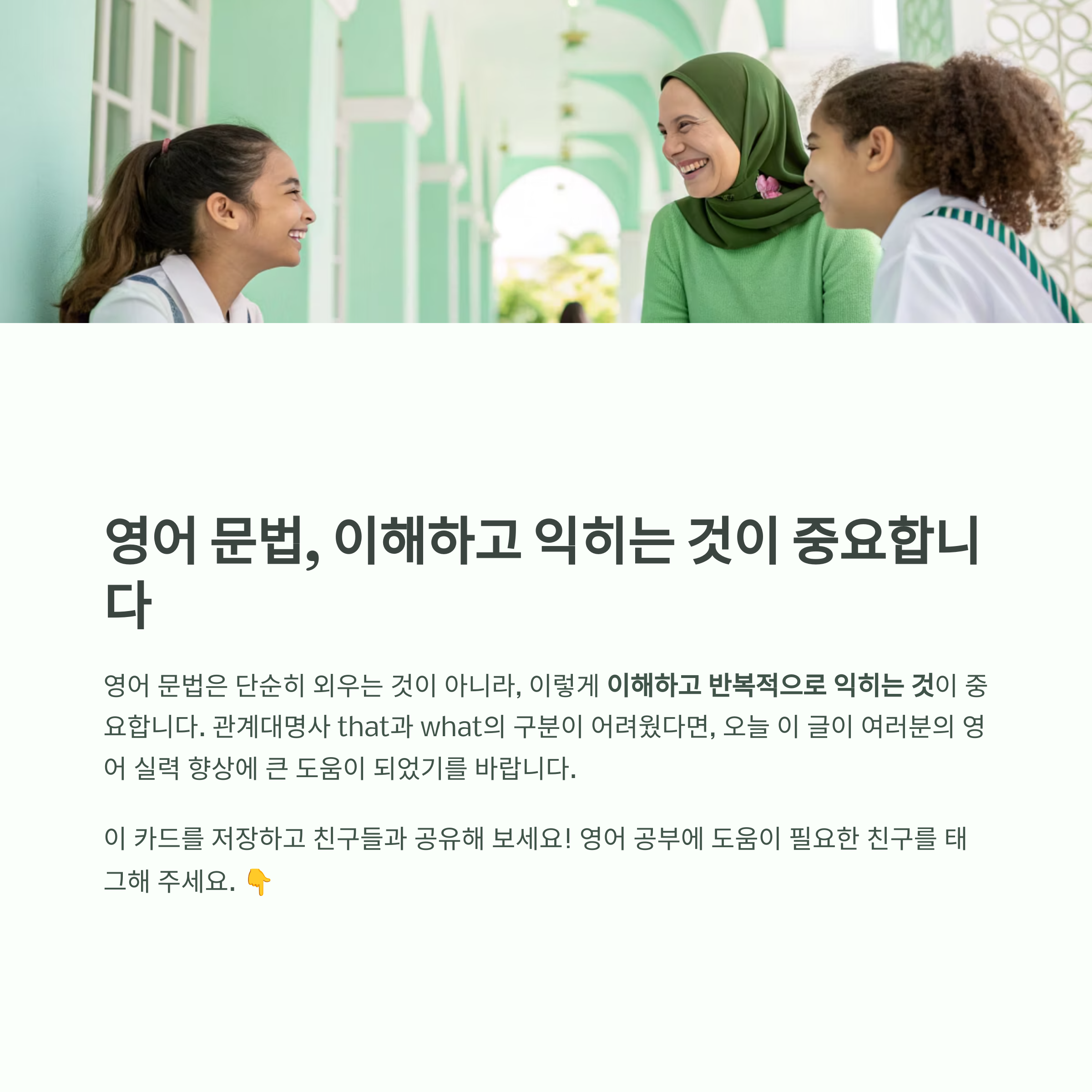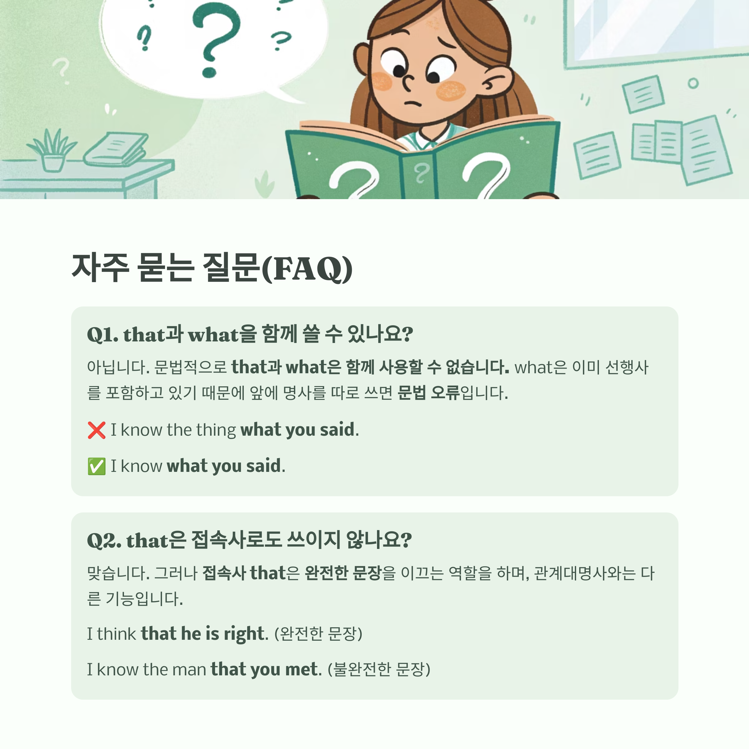 📌 관계대명사 that과 what의 구분이 어려웠다면, 오늘 이 글이 여러분의 영어 실력 향상에 큰 도움이 되었기를 바랍니다.
