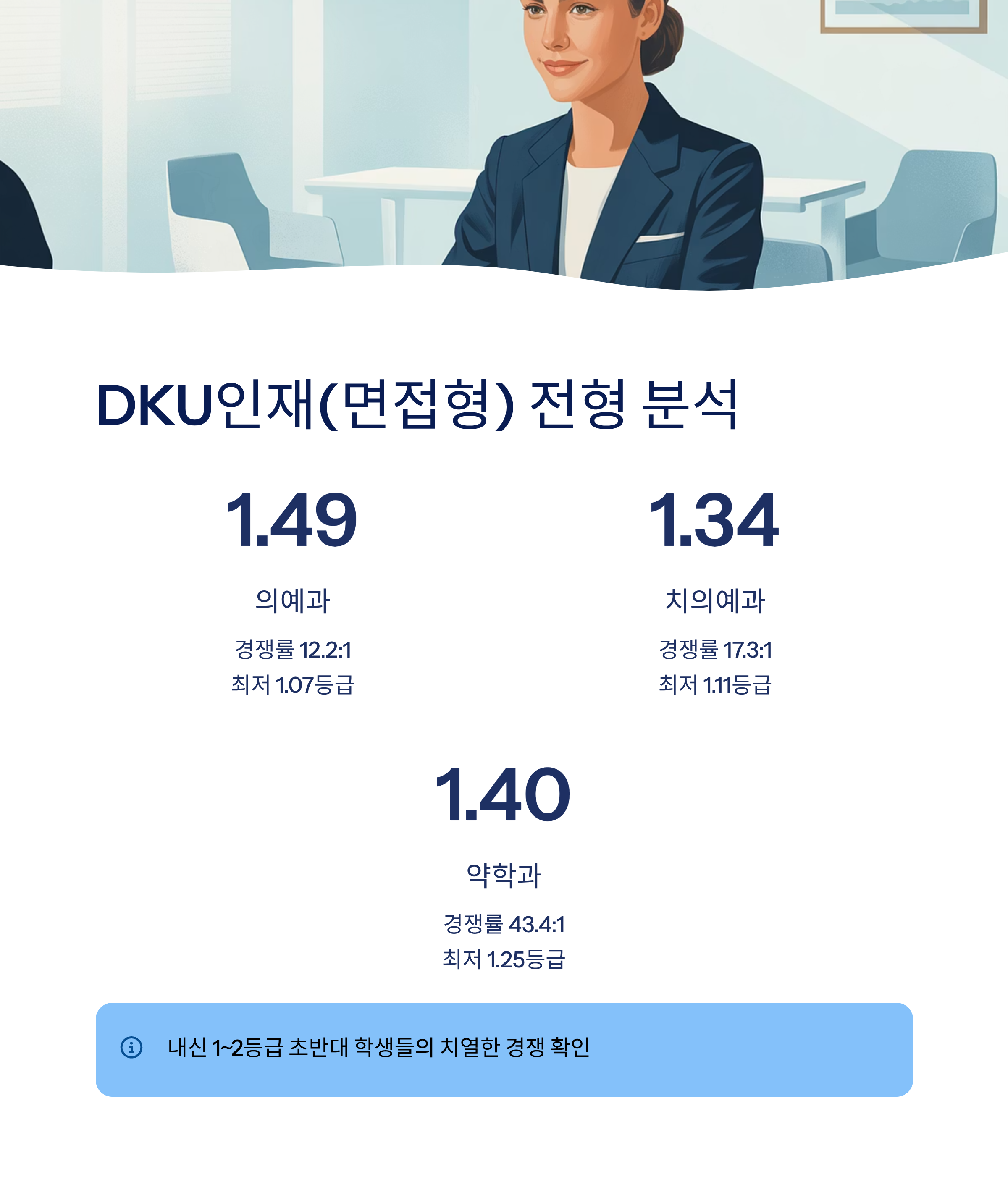 - 의예과: 경쟁률 12.2:1, 평균 1.49등급 (최저 1.07등급)