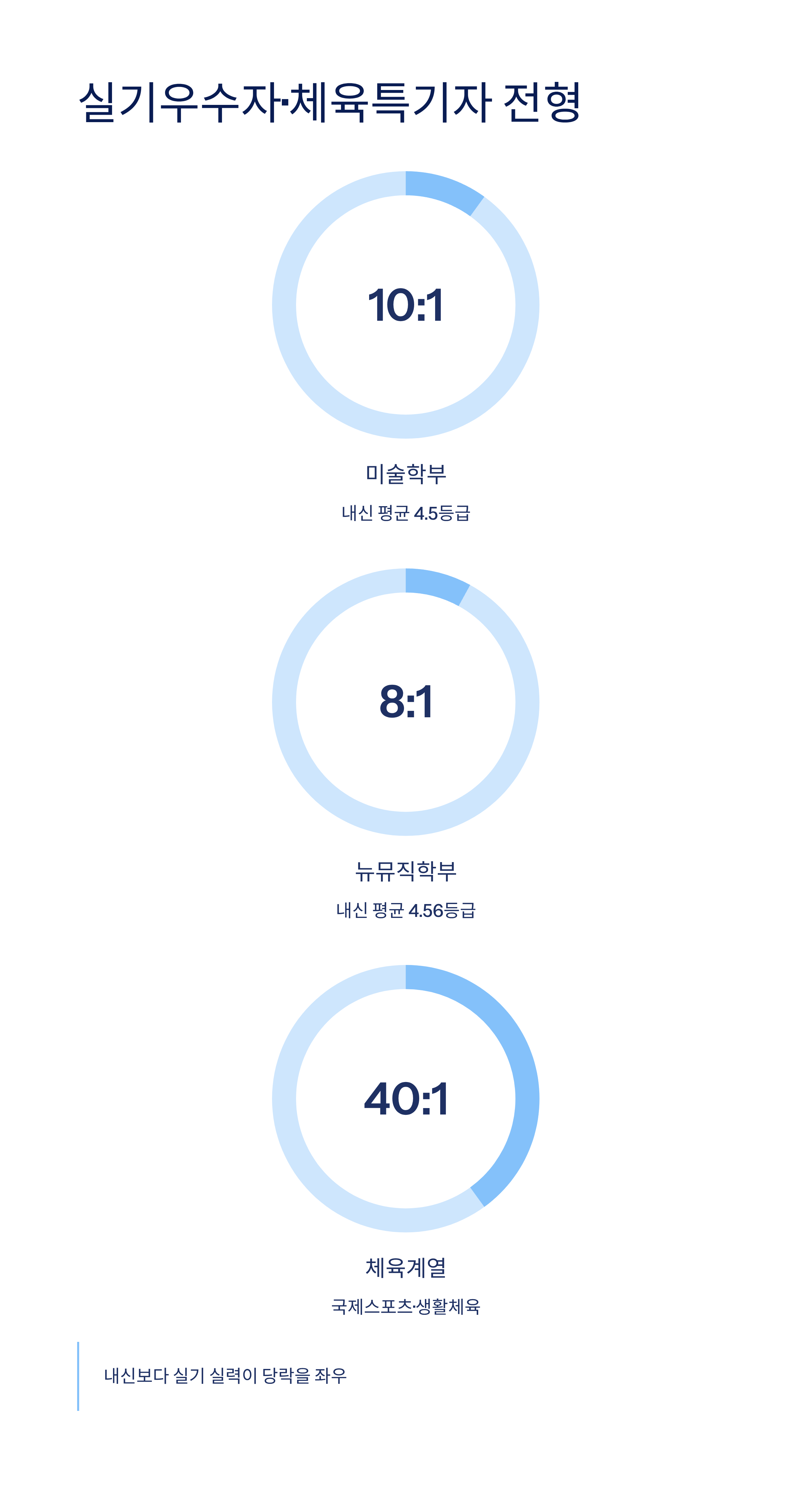 예체능·체육계열은 실기 실력이 합격의 핵심 변수였습니다.