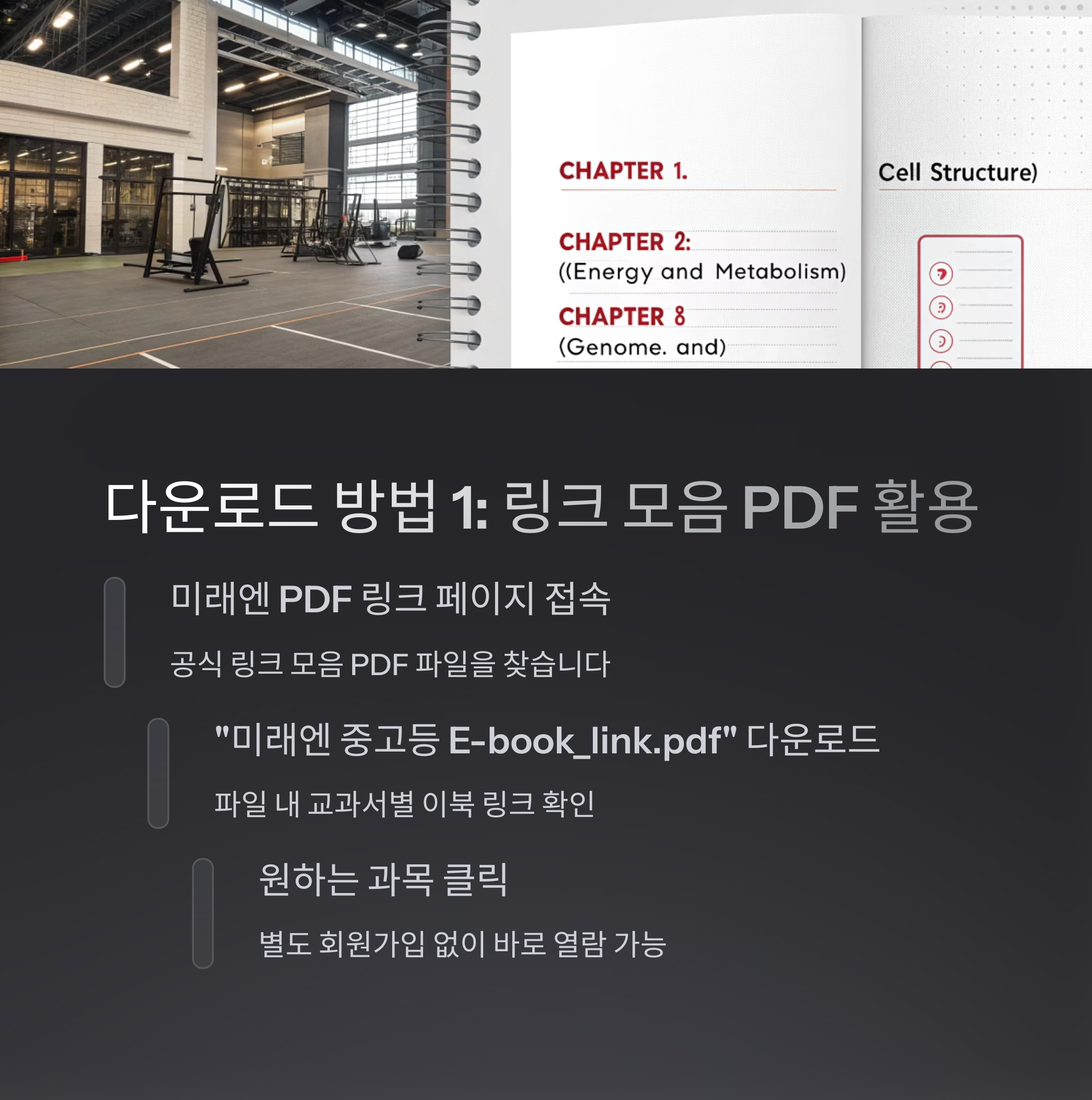 - "미래엔 중고등 E-book_link.pdf" 파일을 내려받습니다.