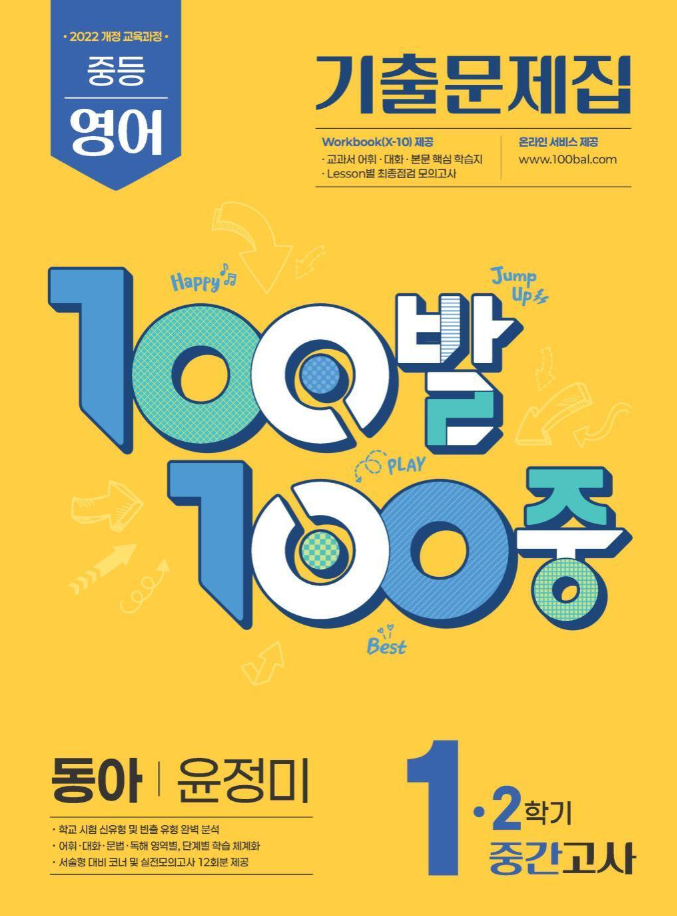 오늘은 2022 개정 교육과정을 완벽히 반영한 100발100중 중등 영어 1학년 기출문제집을 소개해드릴게요. 기출을 바탕으로 한 진짜 실전형 교재라서, 첫 시험 준비에 최적화된 구성이 눈에 띄네요.