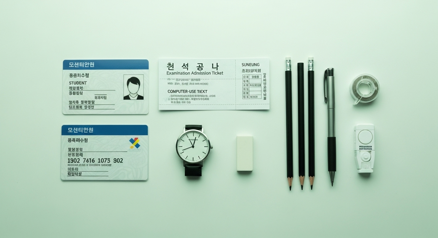 • 필수 준비물: 수험표, 신분증(주민등록증, 운전면허증, 기간 만료 전 여권 등), 아날로그 시계(전자시계 불가)는 잊지 마세요.