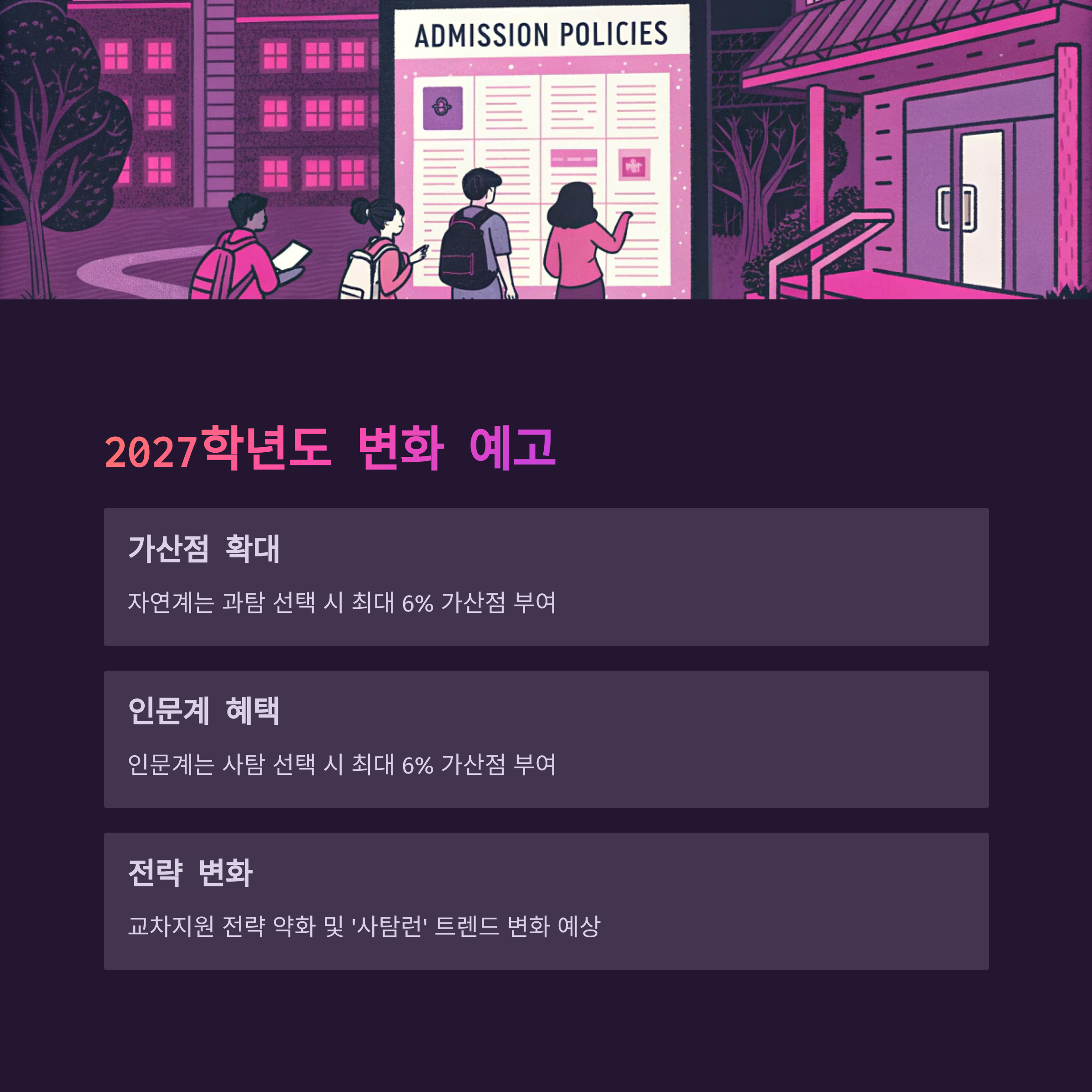 이에 따라 교차지원 전략은 점차 약화될 가능성이 있으며, 기존의 ‘사탐런’ 트렌드에 변화가 예상됩니다.
