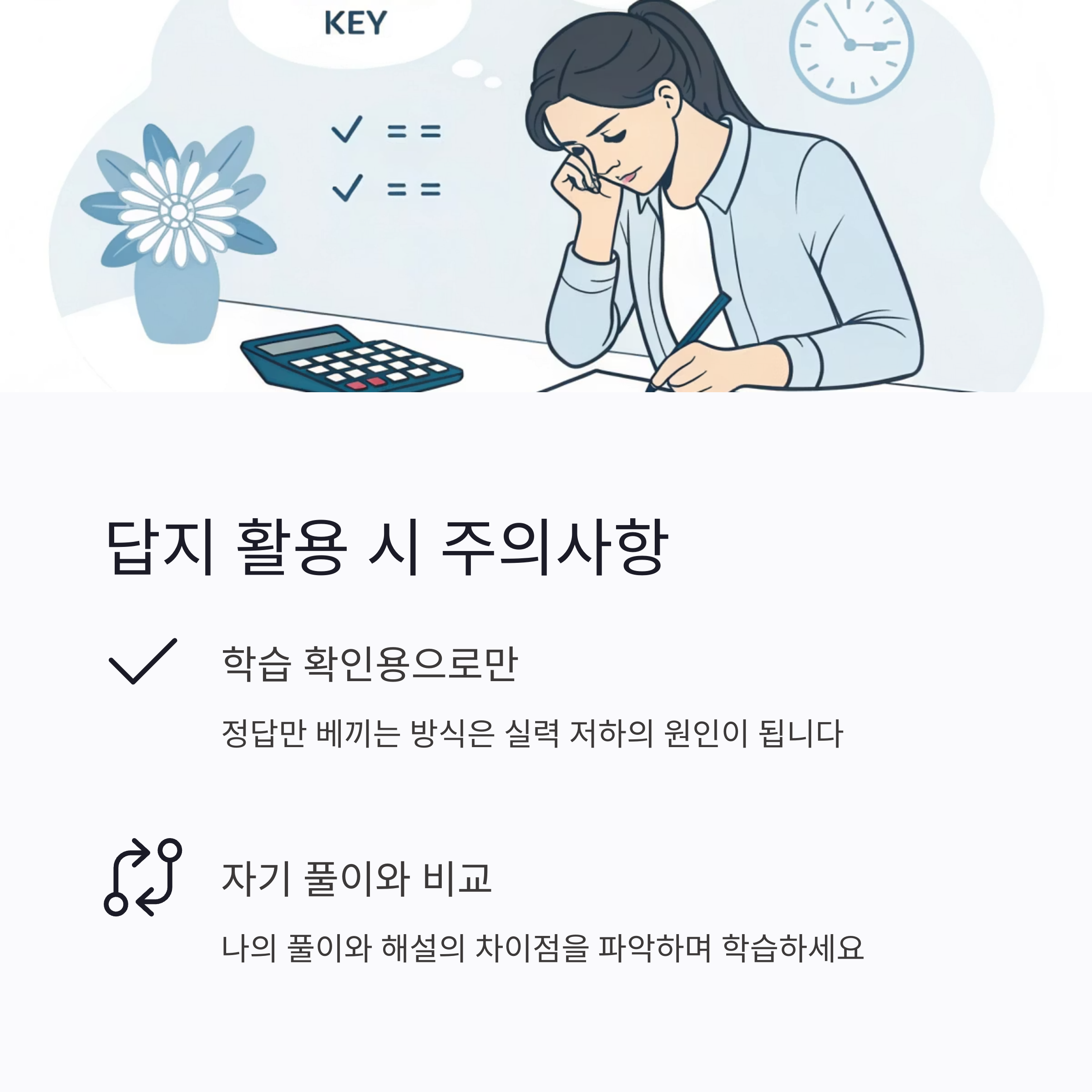 정답만 보고 베끼는 방식의 공부는 오히려 개념 오해와 실전 실력 저하를 초래할 수 있습니다.