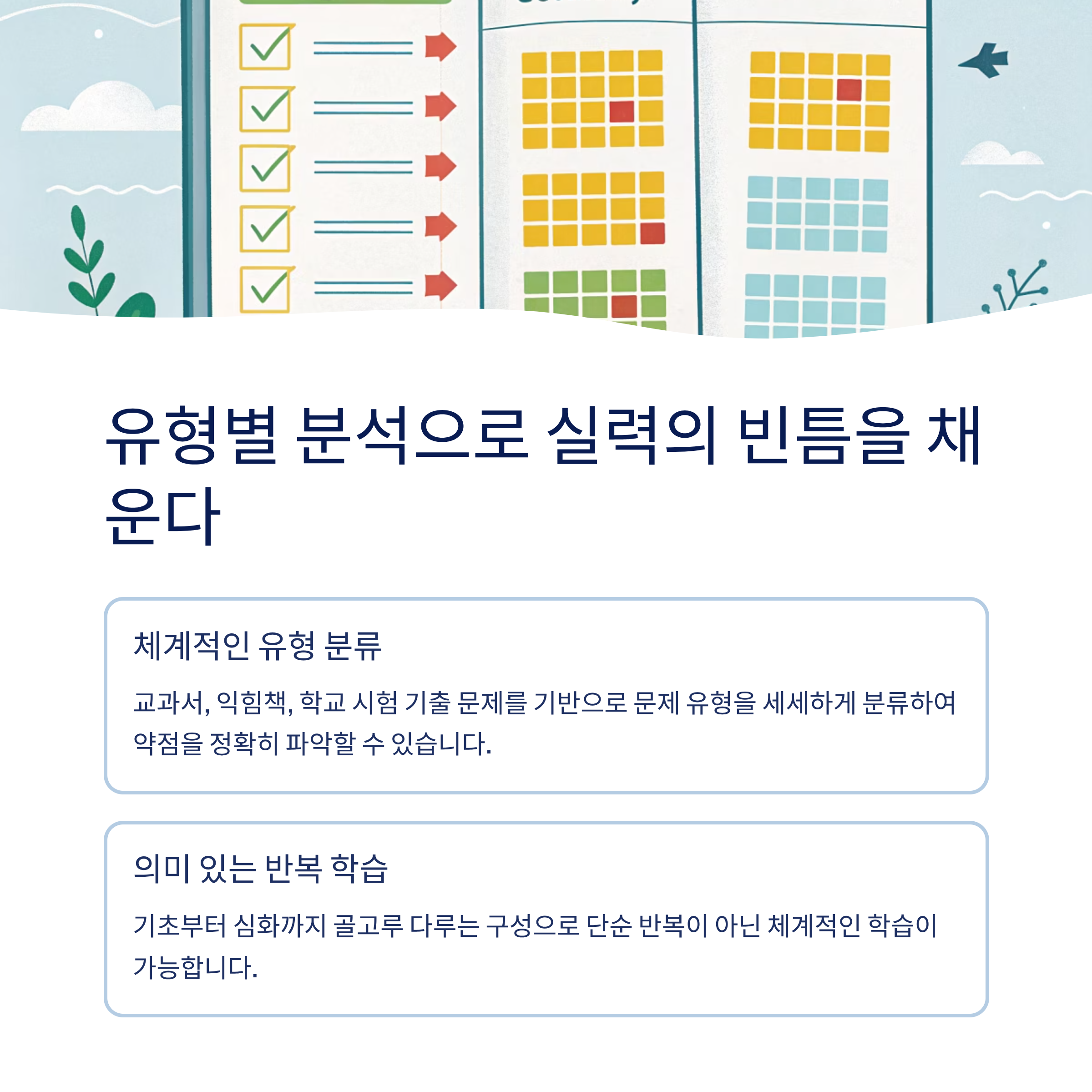 이렇게 정리된 유형 분석은 학생이 어떤 문제에 약한지 파악하고