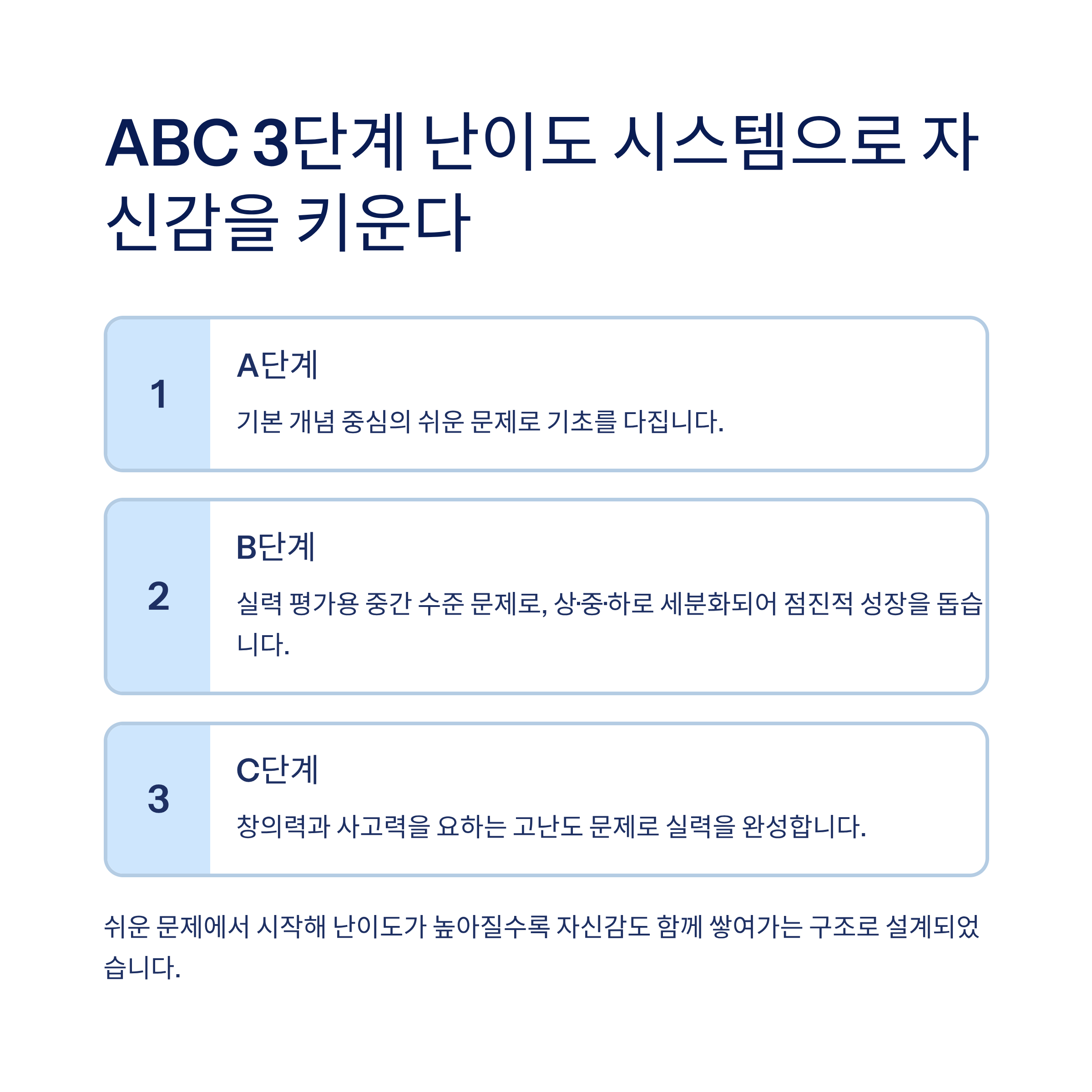 ABC 3단계 난이도 시스템으로 자신감을 키운다