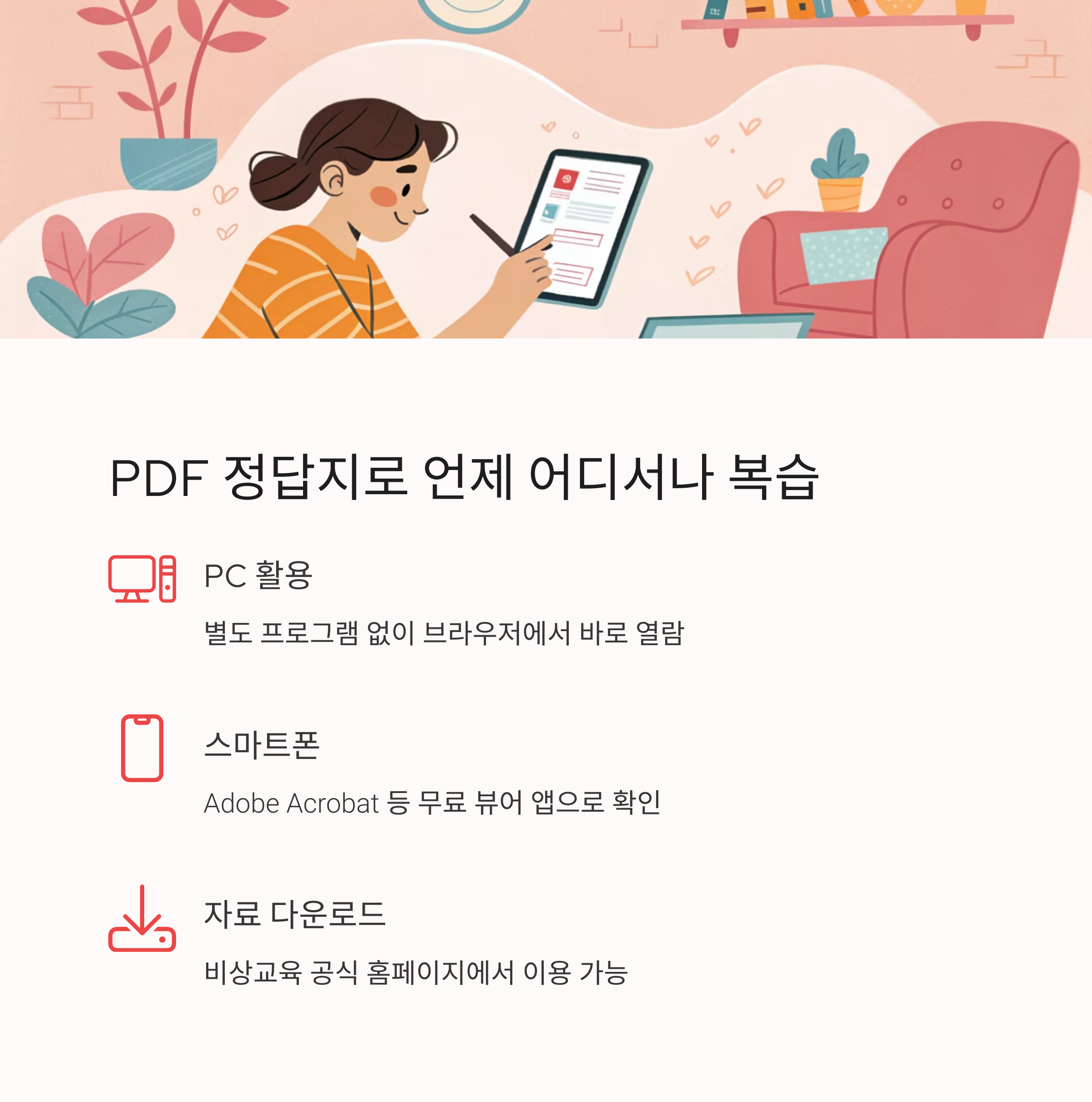 | 정답 해설 접근성 | PDF, 스마트 기기 최적화 | 종이 해설 위주 |