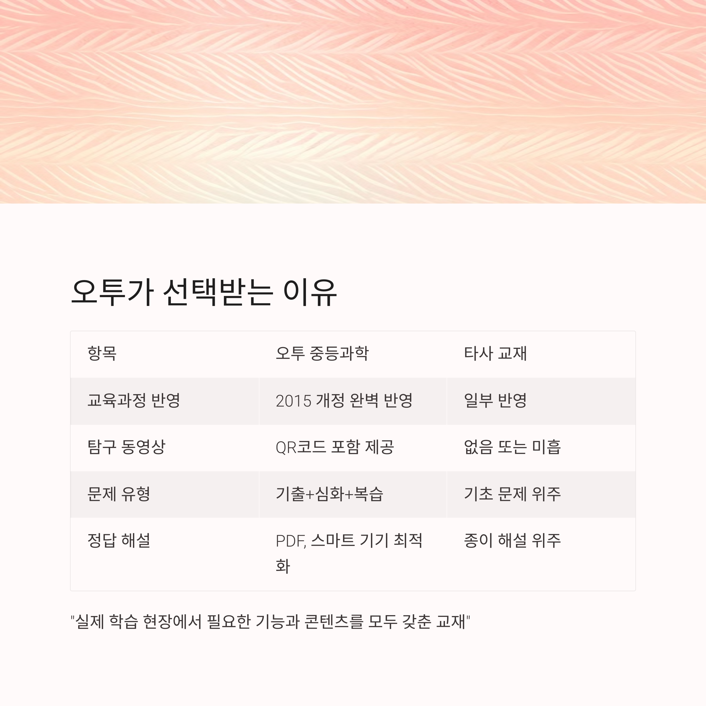| 항목 | 오투 중등과학 | 타사 과학 교재 |
