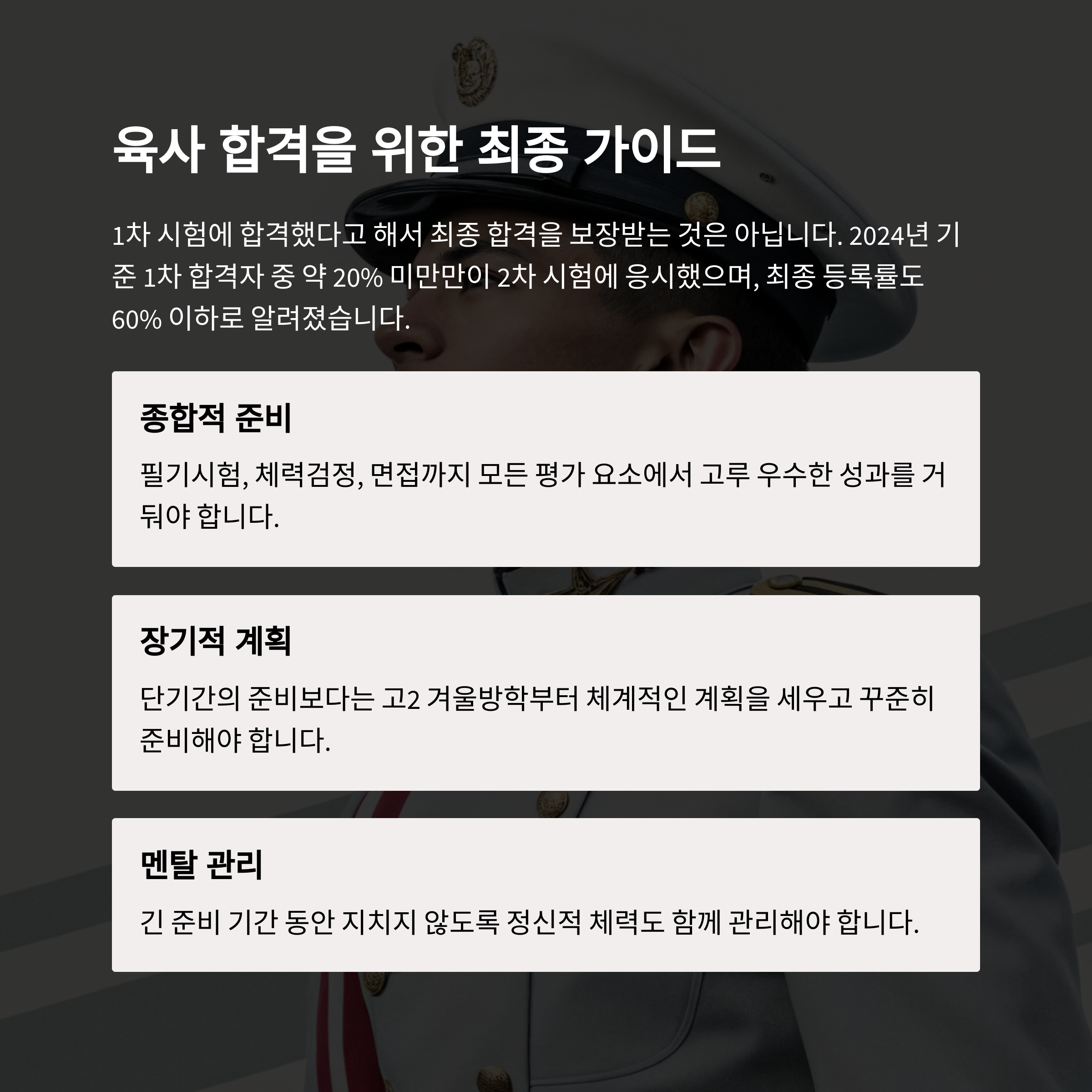 육사를 준비하는 모든 수험생 여러분께 진심 어린 응원의 말을 전하며, 이 글이 여러분의 합격 전략에 도움이 되길 바랍니다.