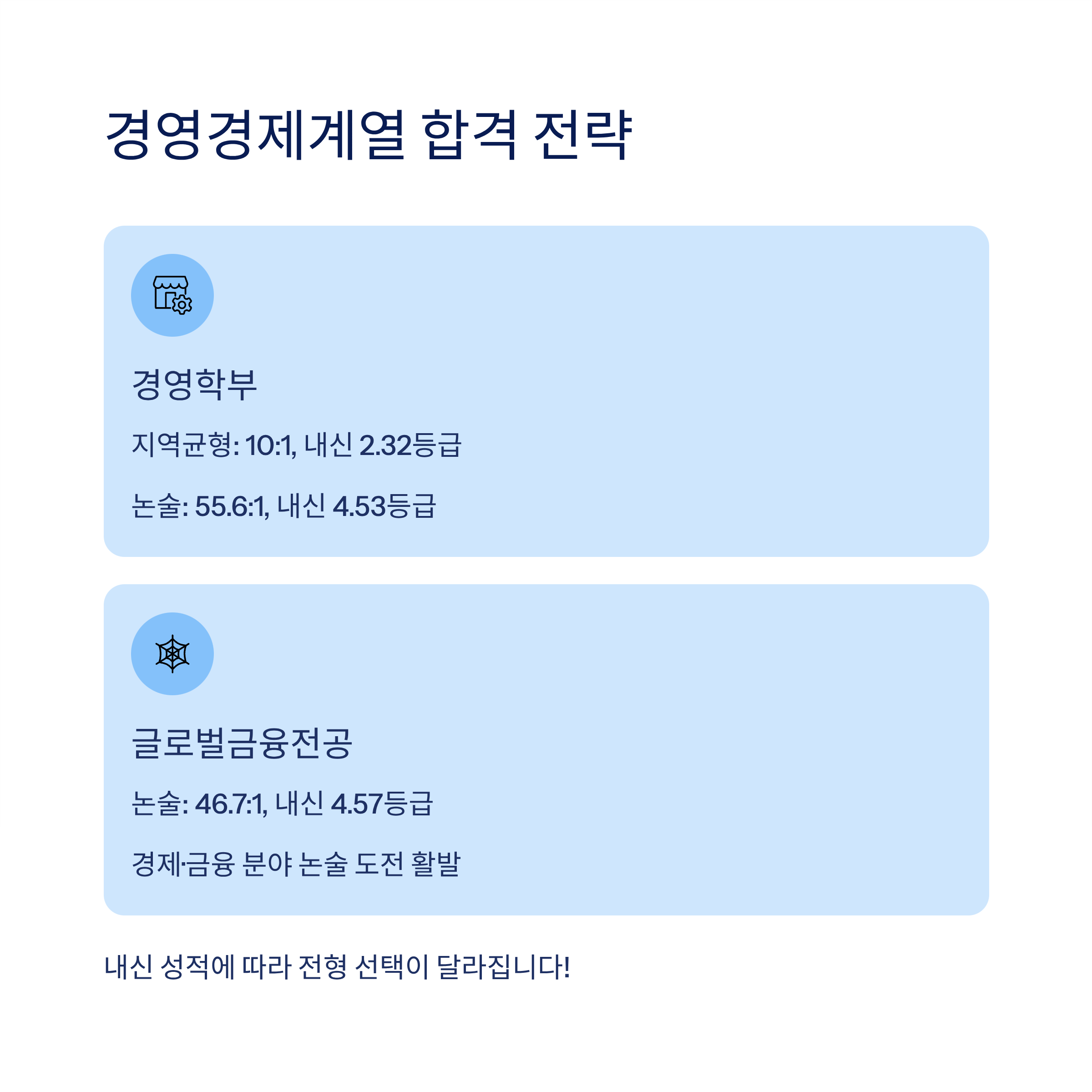 👉 경영학은 교과·논술 모두 인기. 내신 성적에 따라 선택지가 달라집니다.