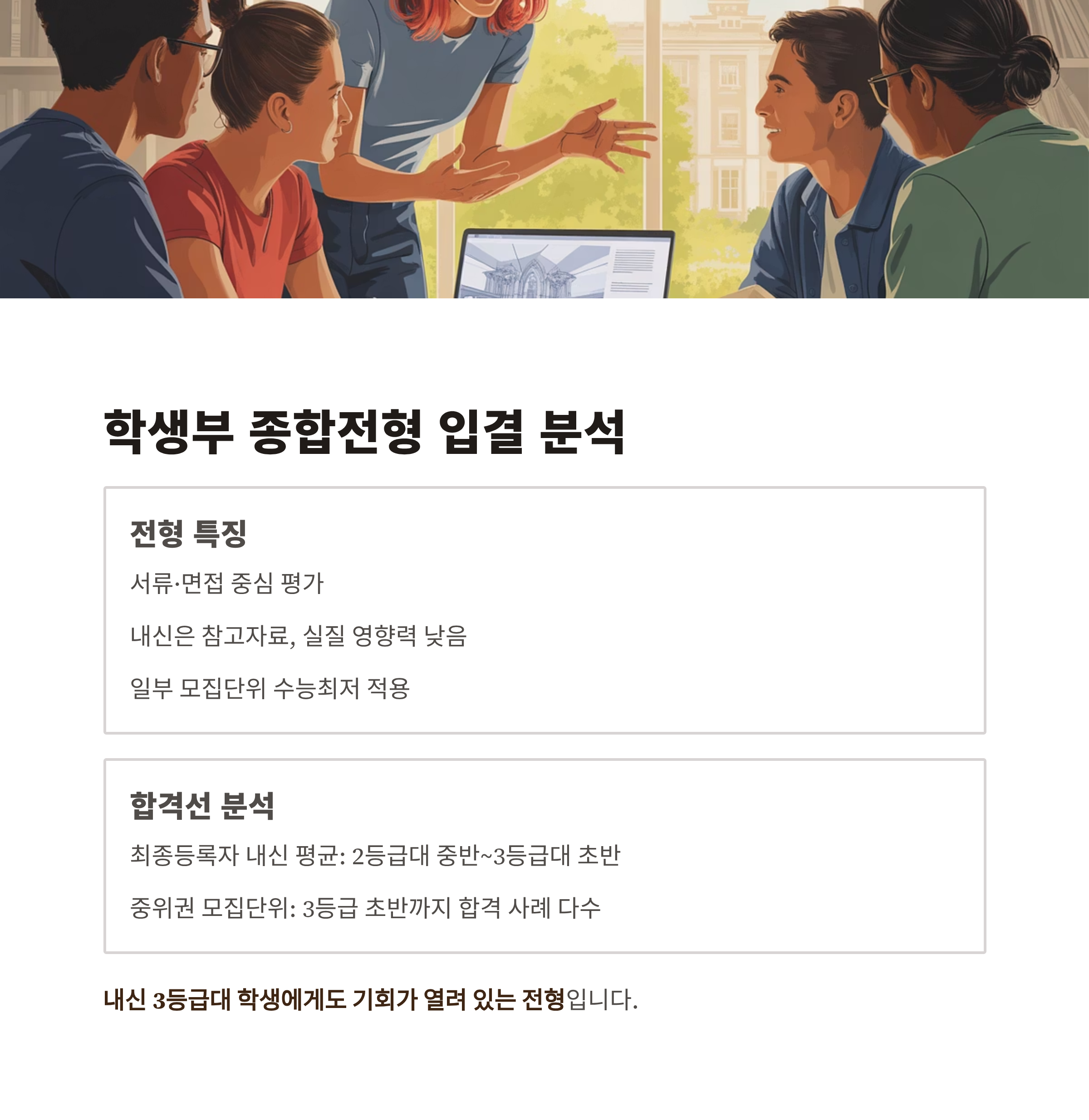 👉 결론적으로 내신 3등급대 학생에게도 기회가 열려 있는 전형입니다.