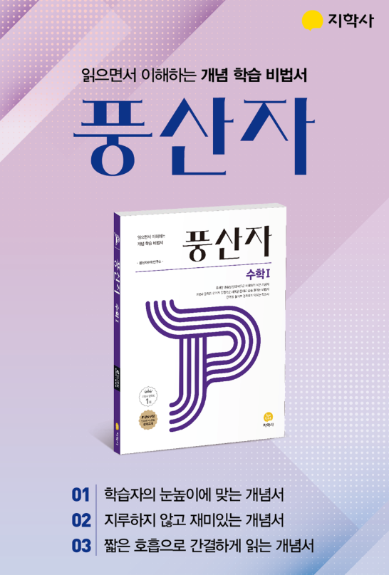 풍산자 교재는 학습자가 개념을 짧고 간결하게 이해할 수 있도록 주제별로 나누어 구성되었습니다. 이는 수학 개념을 체계적으로 정리하고, 핵심 내용을 빠르게 익히는 데 효과적입니다.