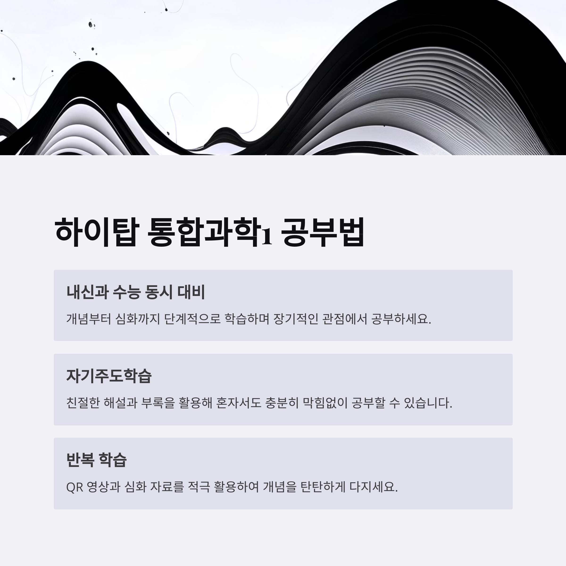 학교 내신뿐 아니라 수능에서 출제되는 통합과학형 문제까지 충분히 대비할 수 있는 난이도와 범위를 갖추고 있어, 장기적으로 훨씬 효율적입니다.