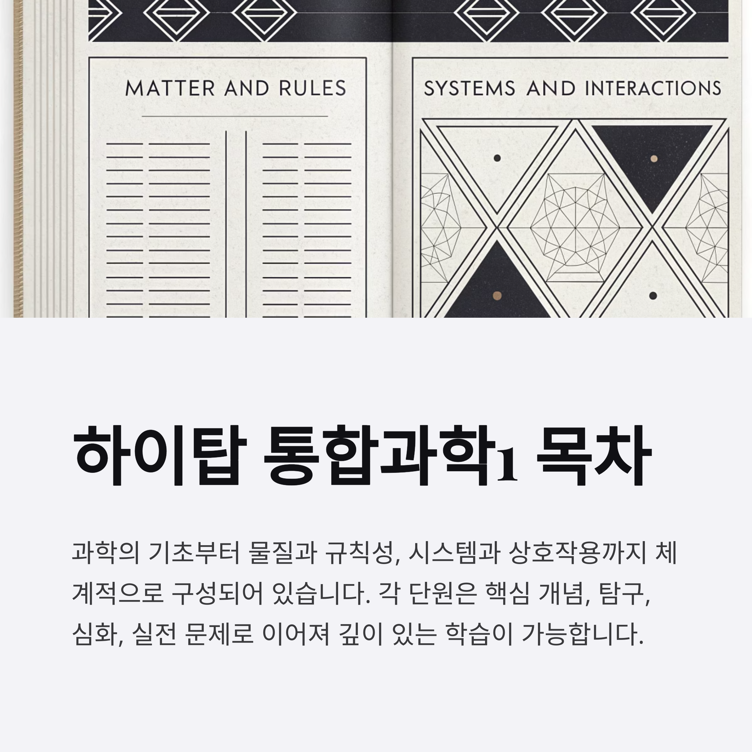 하이탑 통합과학1(2025) 최신판의 목차는 아래와 같이 구성되어 있습니다.