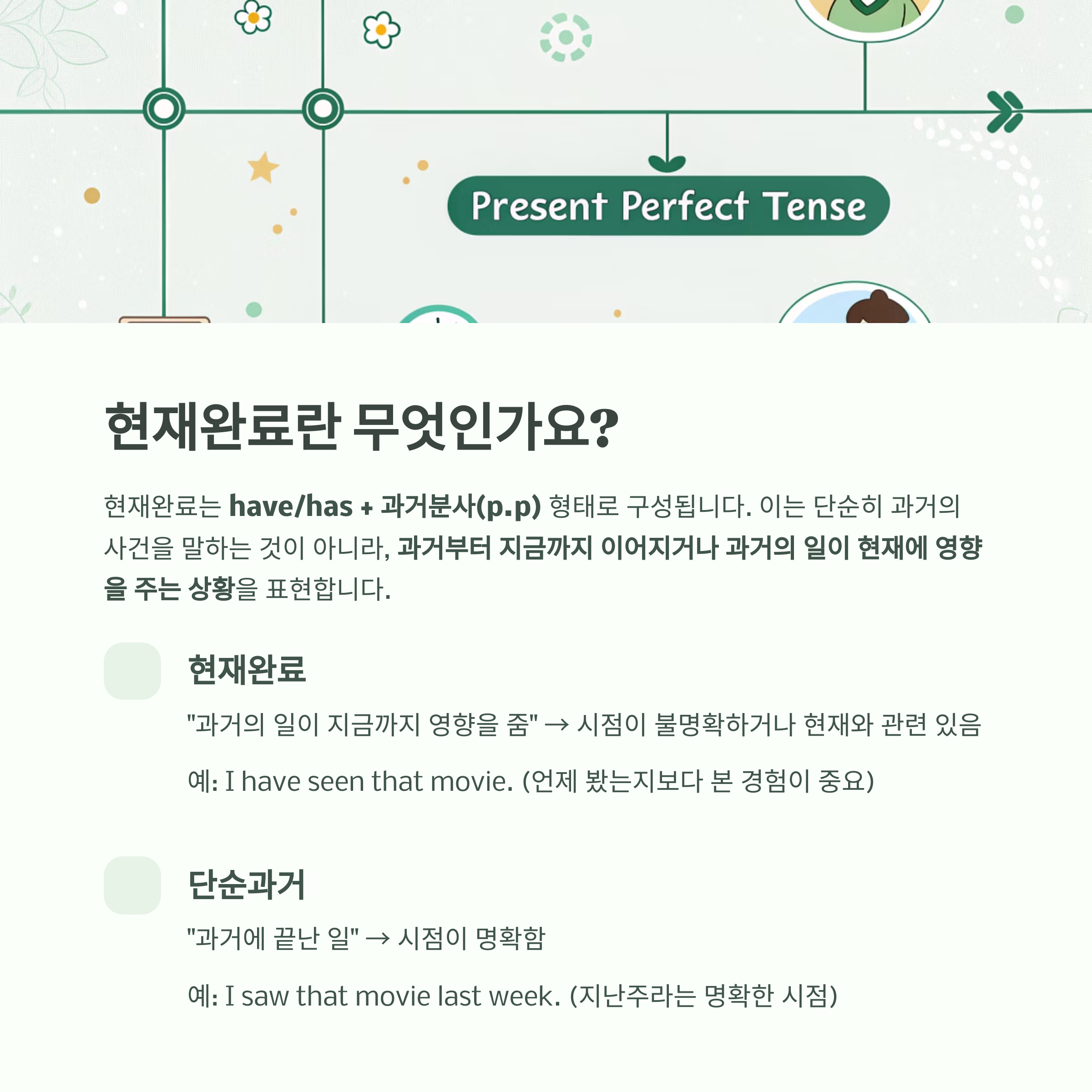 영어 문법 중에서 많은 학습자들이 헷갈려하는 시제 중 하나가 바로 현재완료(have/has + p.p)입니다.