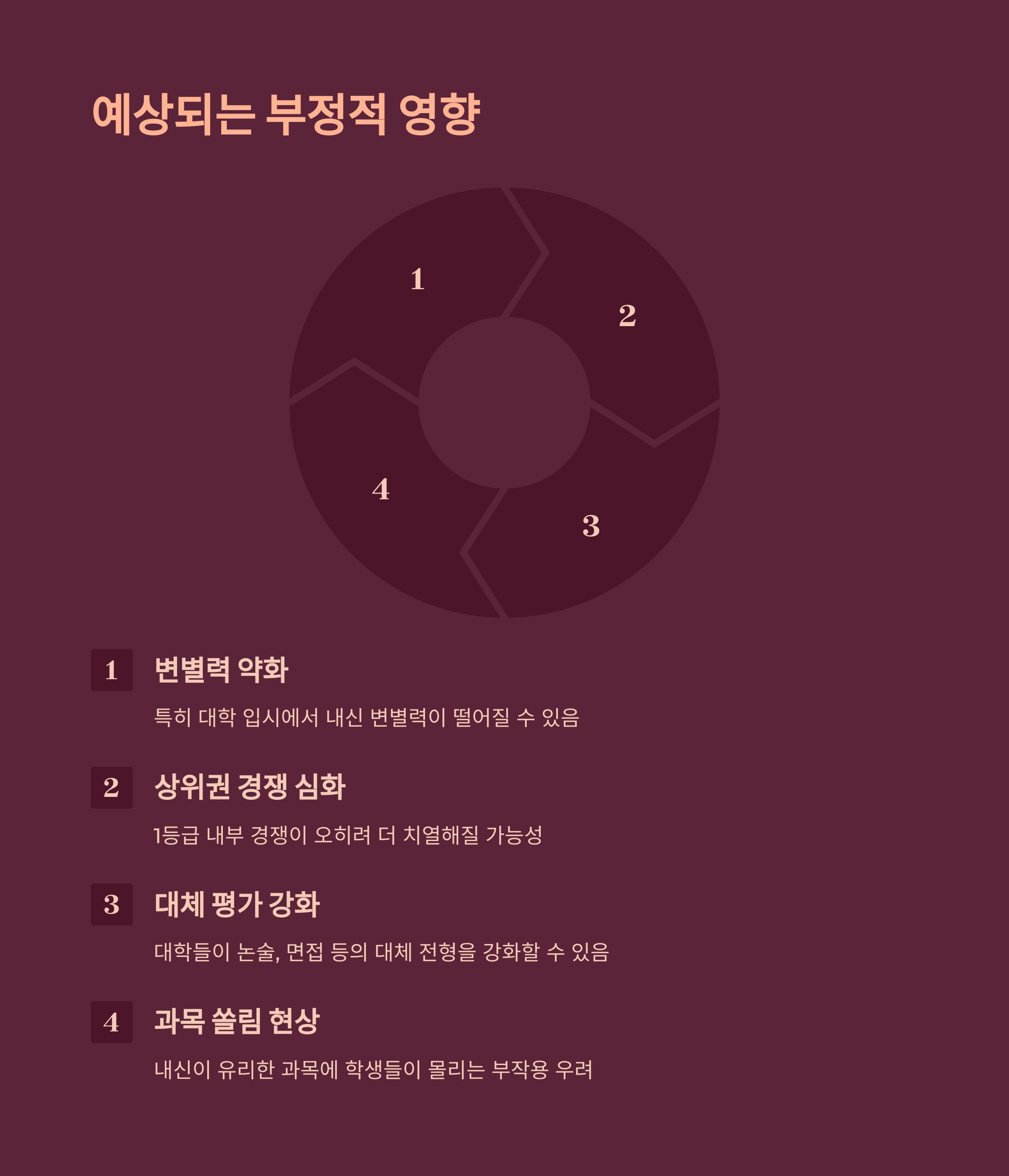 상위권 학생 비율이 늘어나면서 과도한 내신 경쟁이 줄어들 것으로 기대됩니다.