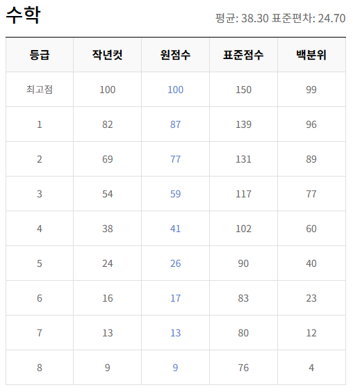 💡 참고: 영어는 절대평가이므로 원점수 기준입니다. 국어, 수학은 상대평가로 백분위와 표준점수에 따라 최종 등급이 달라질 수 있습니다.