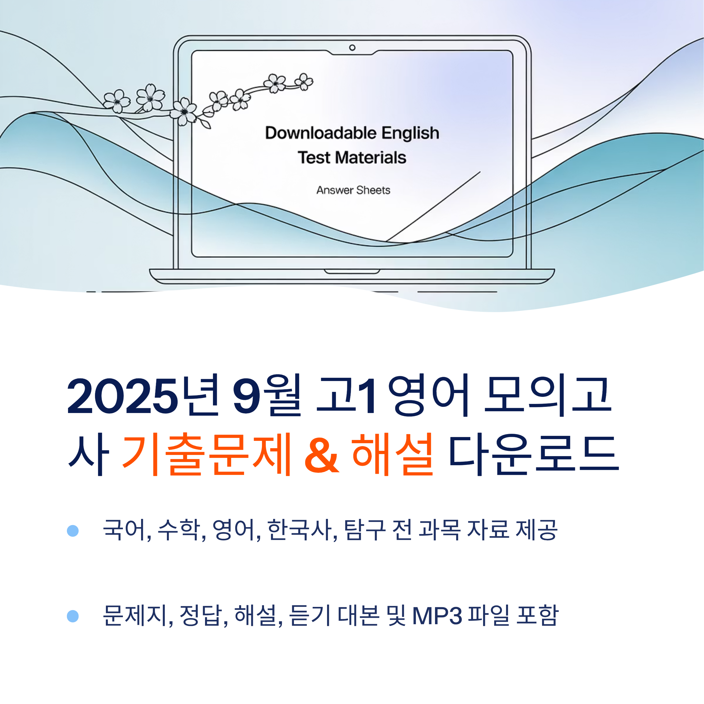지금 바로 아래 링크를 통해 2025년 9월 고1 영어 학평 기출문제 다운로드하고, 반복 풀이로 실력을 완성해보세요.