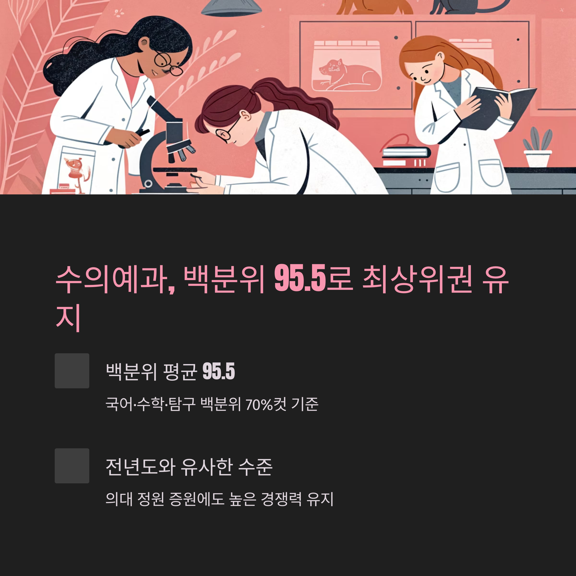 수의예과, 정시 백분위 평균 95.5로 독보적