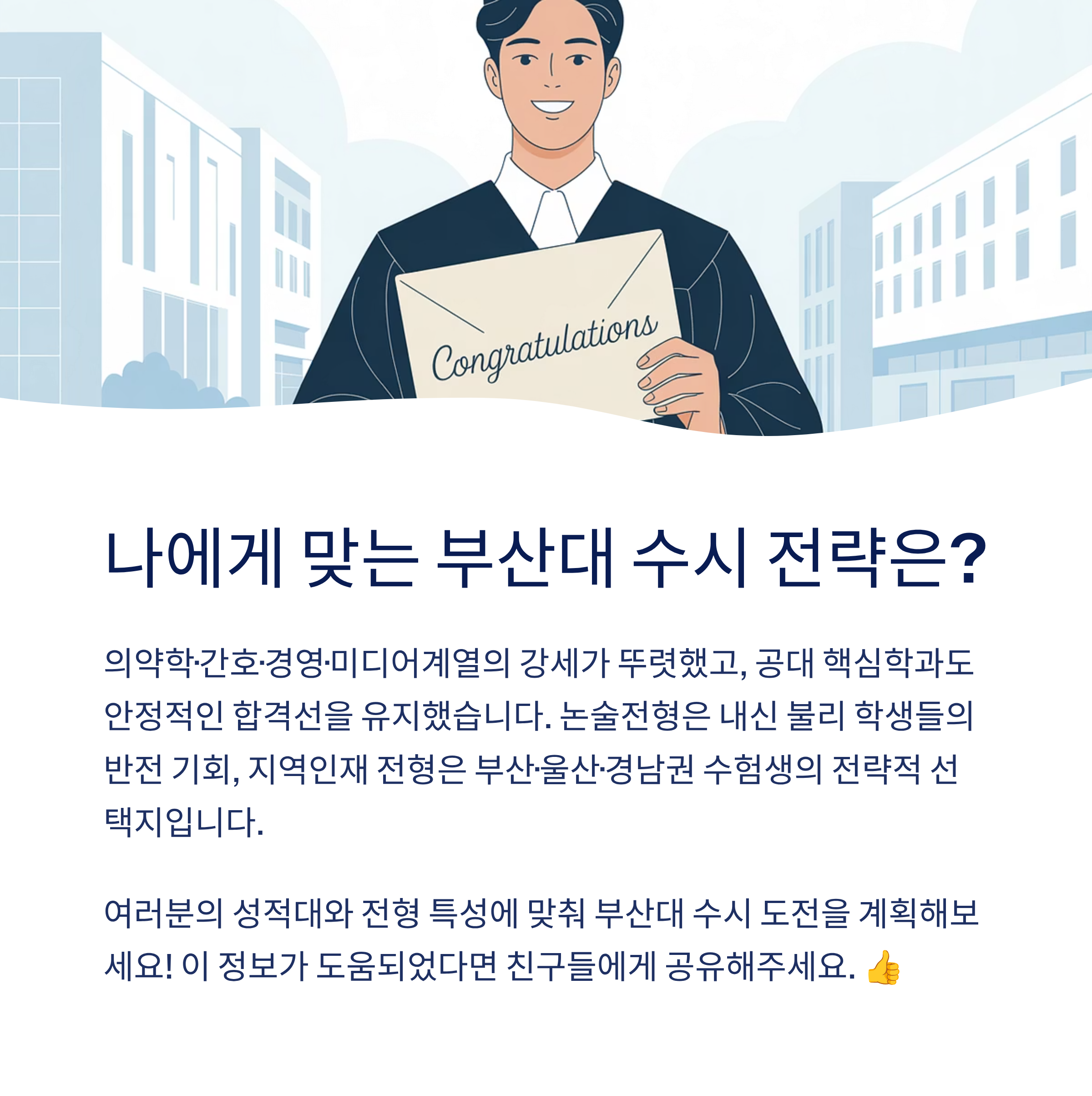 👉 여러분의 성적대와 전형 특성에 맞춰, 부산대 수시 도전을 계획해 보세요.