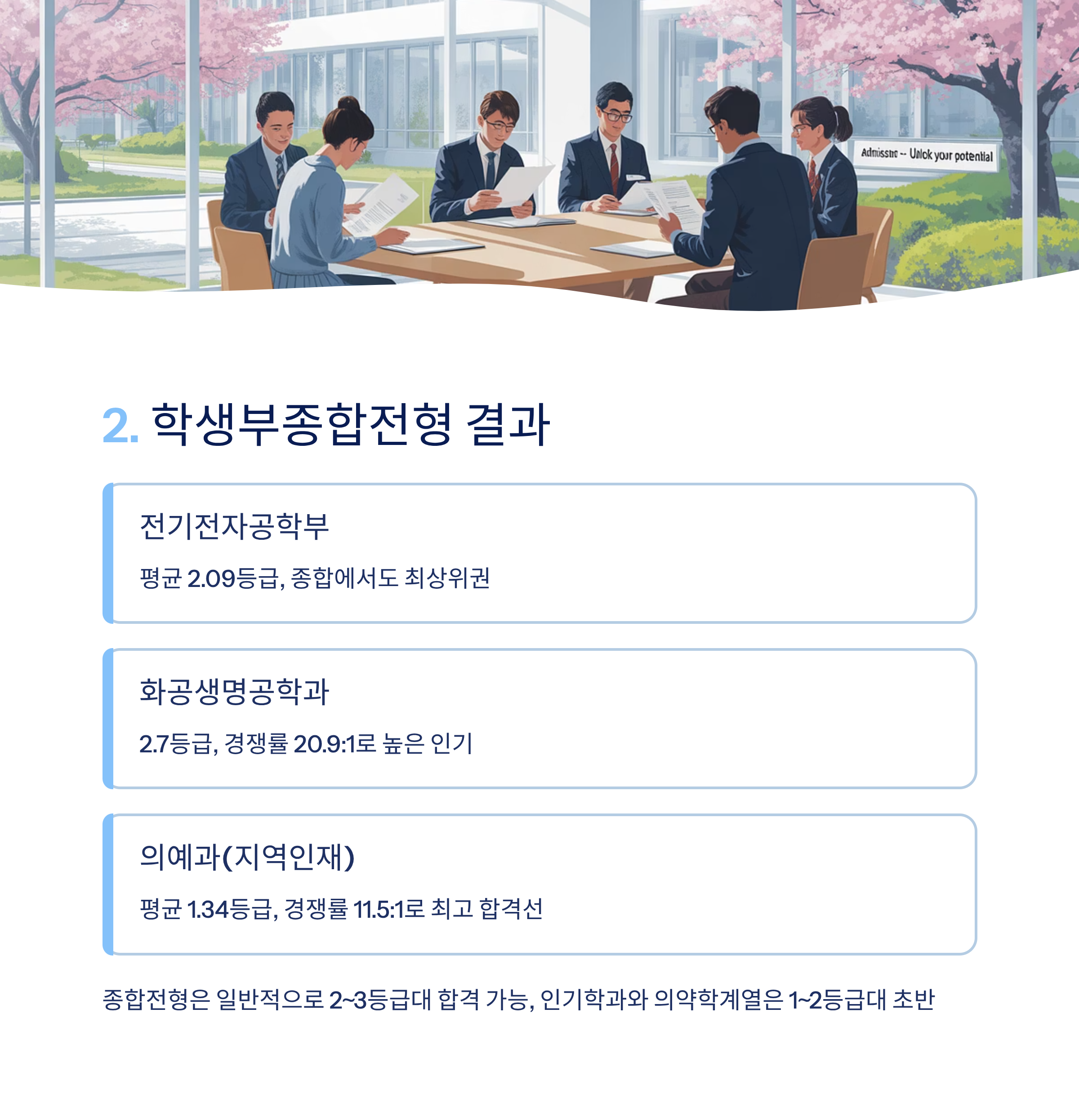 👉 종합전형은 일반적으로 2~3등급대 합격이 가능했으나, 인기 학과와 의약학계열은 1~2등급대 초반에서 합격선이 형성되었습니다.