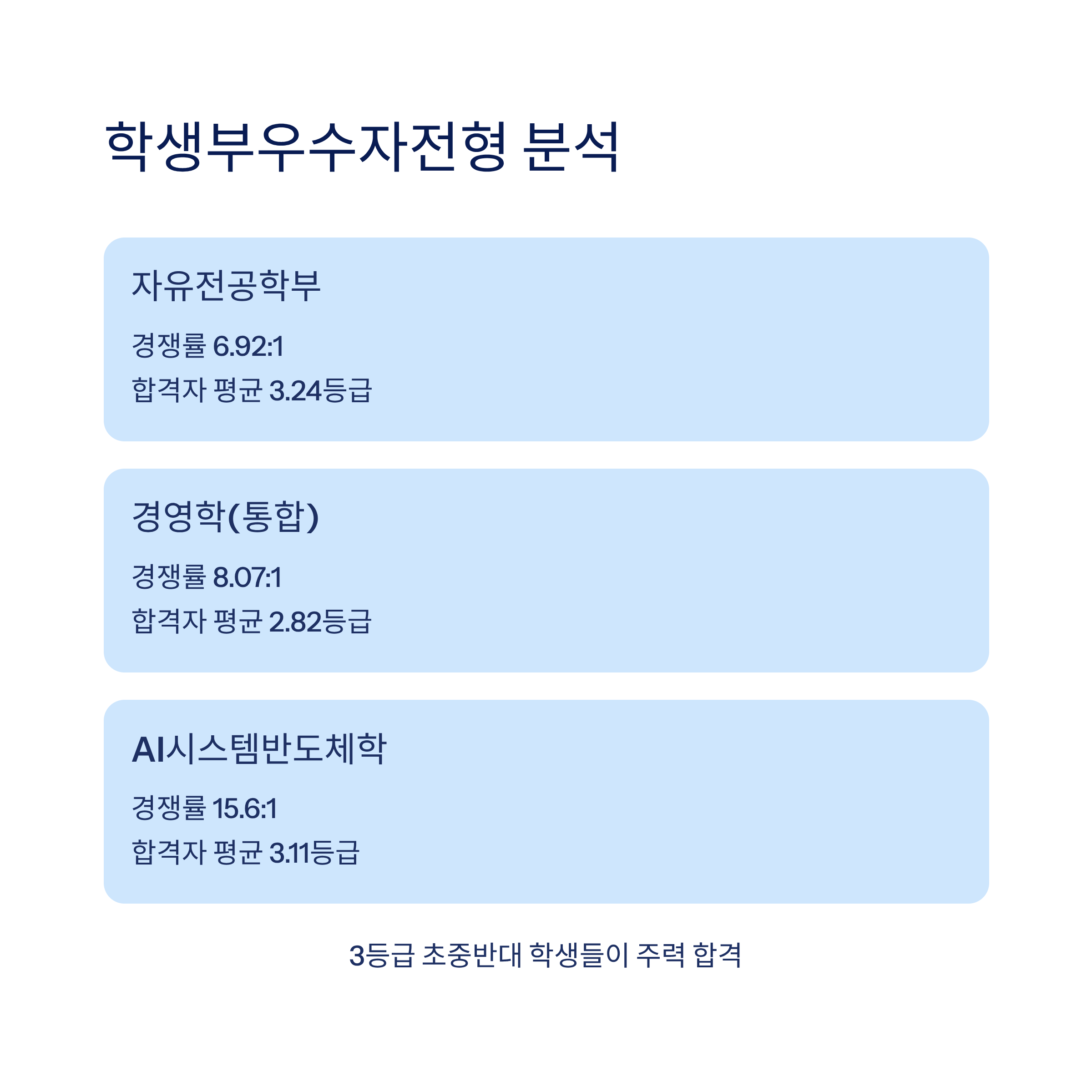 • AI·반도체·첨단계열은 경쟁률이 매우 높아 2~3등급대 초반 학생들에게만 실질 기회가 있었습니다.