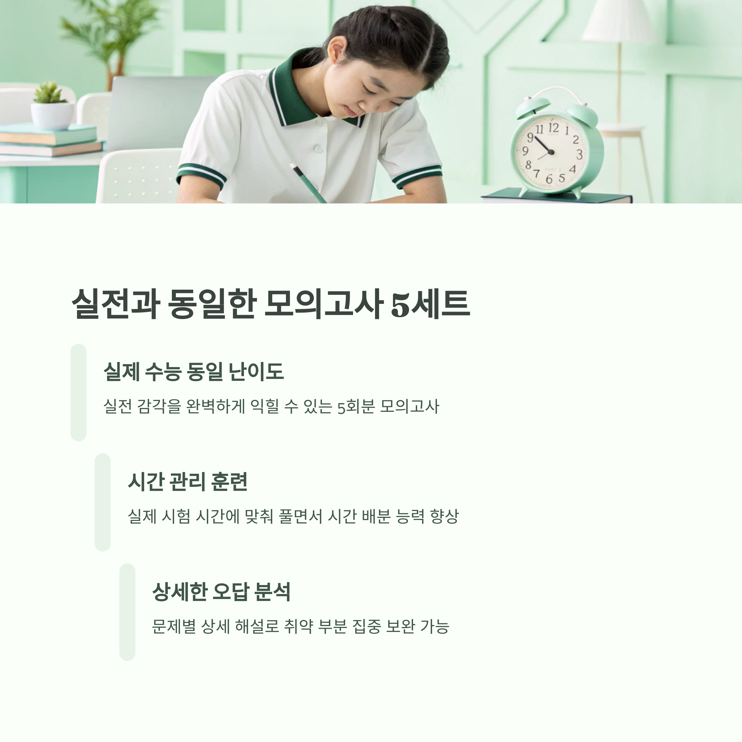 이 모의고사를 통해 그동안 다져온 실력을 최종 점검하고, 실전에서의 시간 배분과 문제풀이 순서까지 전략적으로 연습할 수 있습니다.