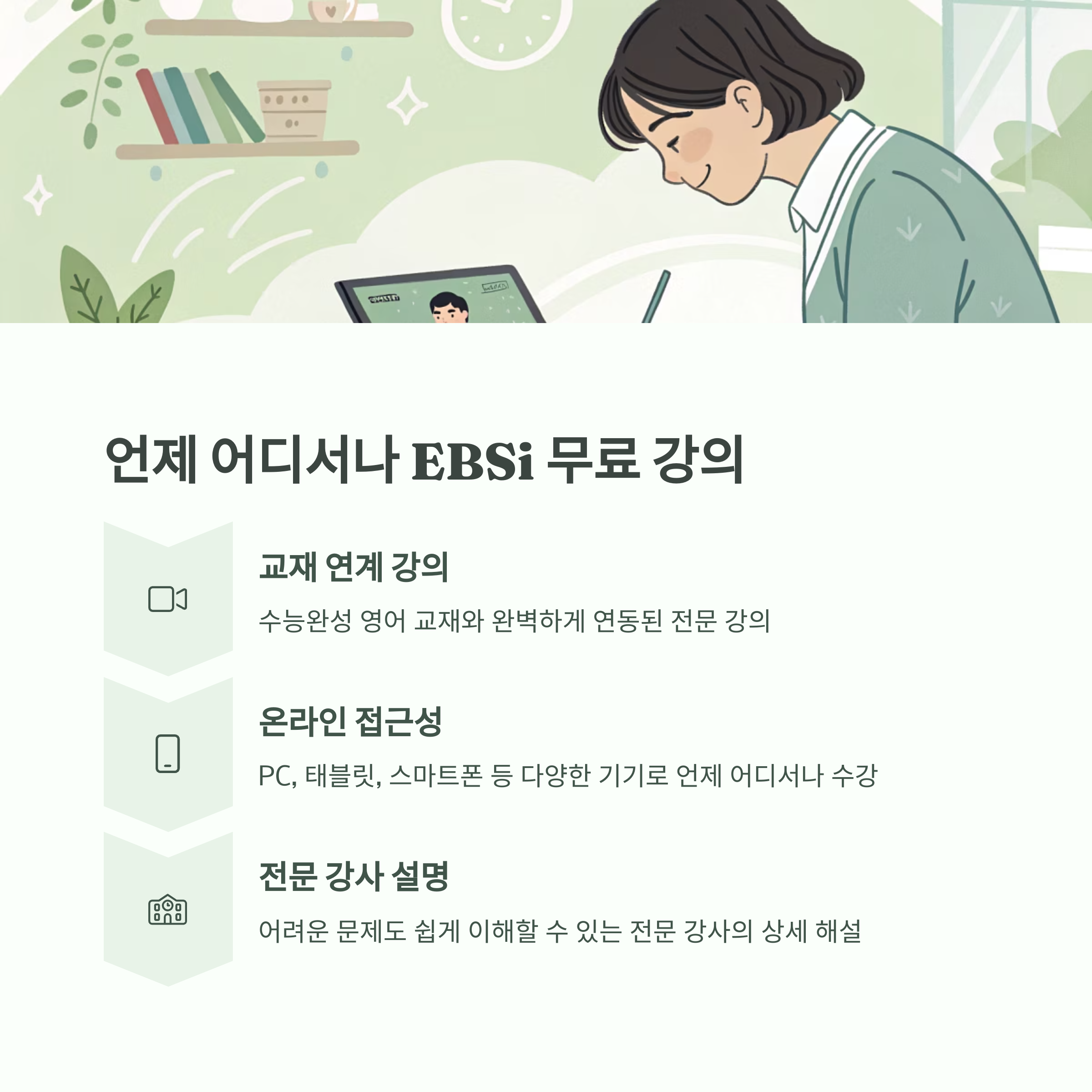 수험생들이 EBS 수능완성 영어를 공부할 때 반드시 활용해야 할 것이 바로 EBSi 무료 강의입니다.