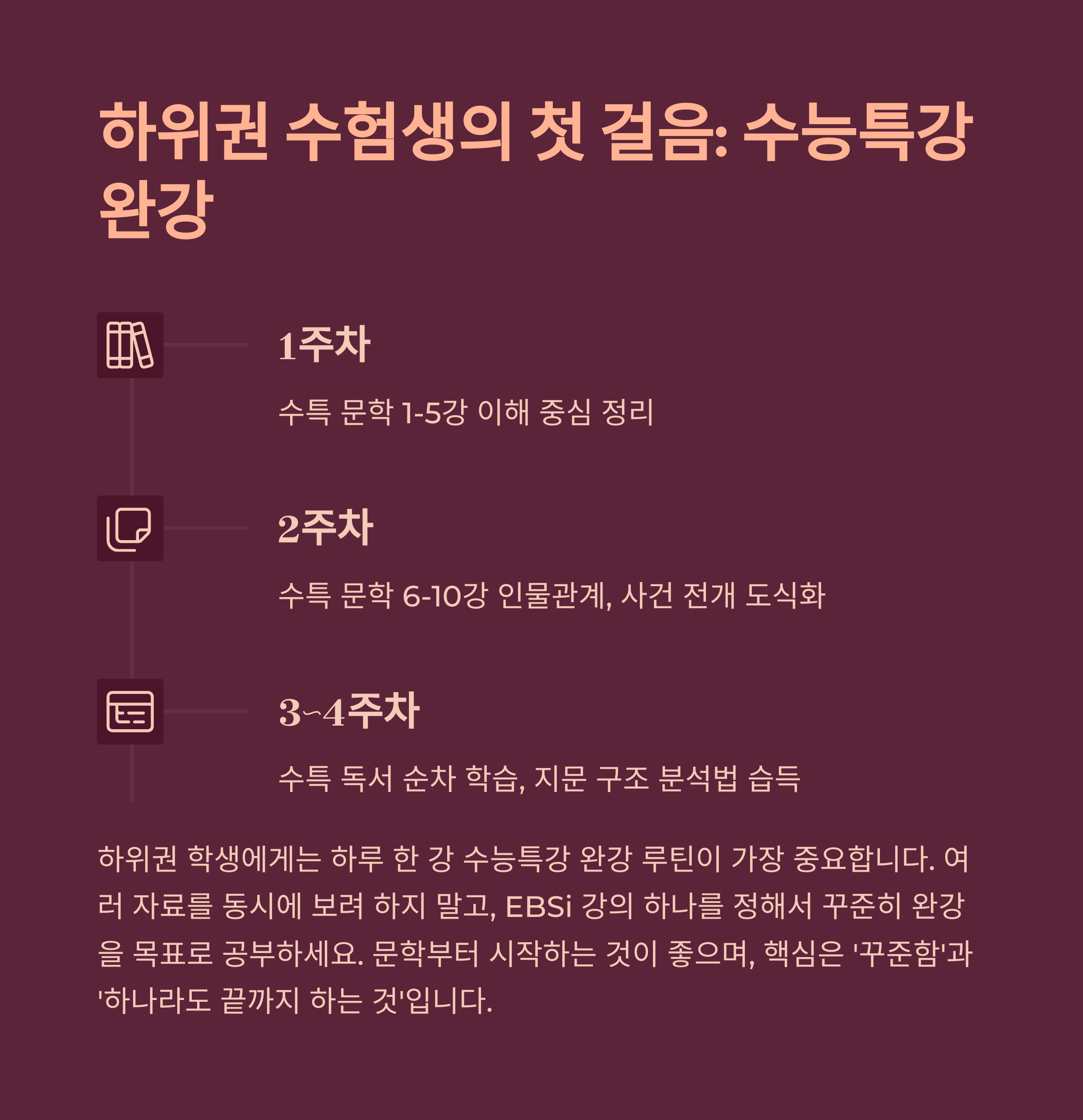 하위권 학생에게는 하루 한 강 수능특강 완강 루틴이 가장 중요합니다.