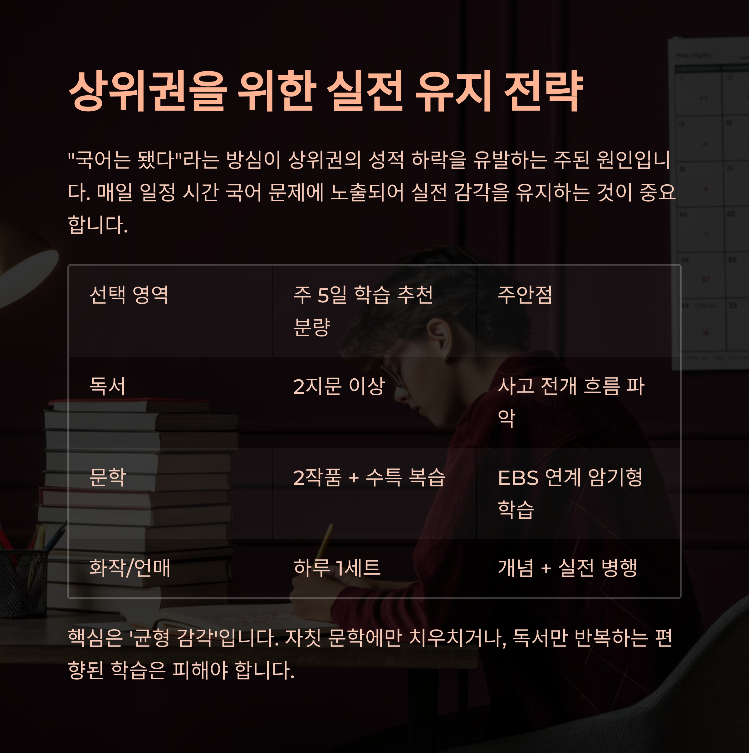 "국어는 됐다"라는 방심이 상위권의 성적 하락을 유발하는 주된 원인입니다.