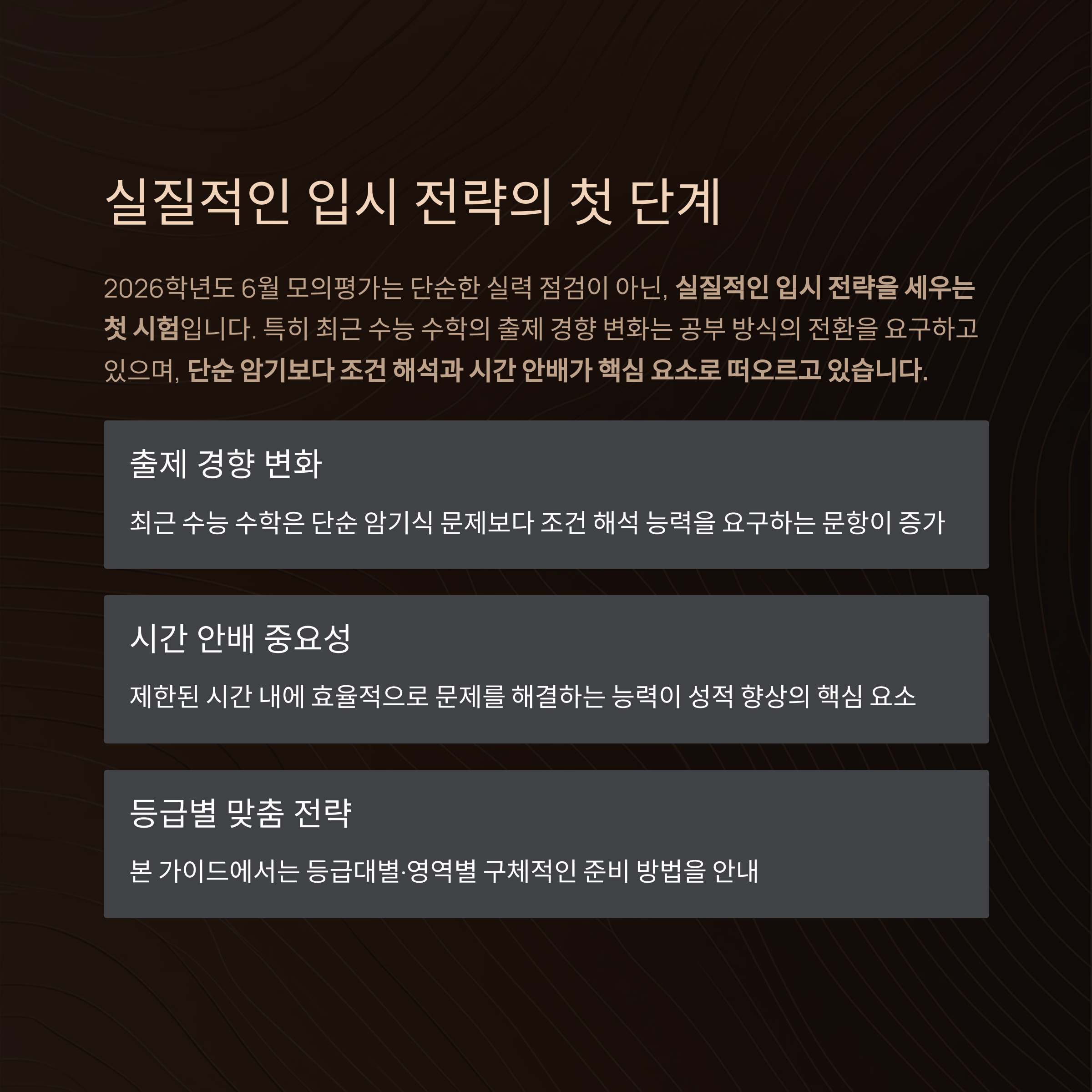 2026학년도 6월 모의평가는 단순한 실력 점검이 아닌, 실질적인 입시 전략을 세우는 첫 시험입니다.