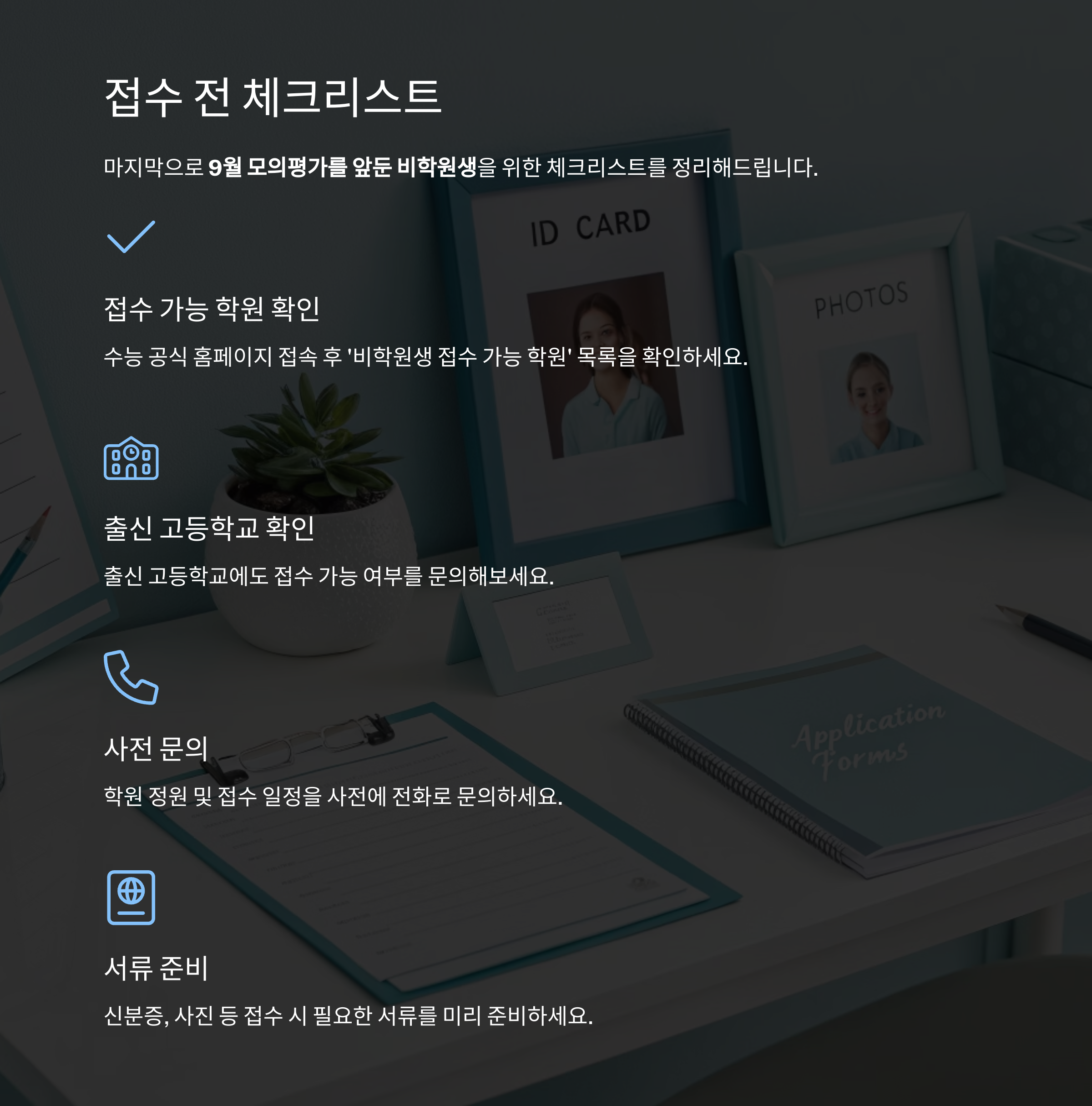 마지막으로 9월 모의평가를 앞둔 비학원생을 위한 체크리스트를 정리해드립니다.
