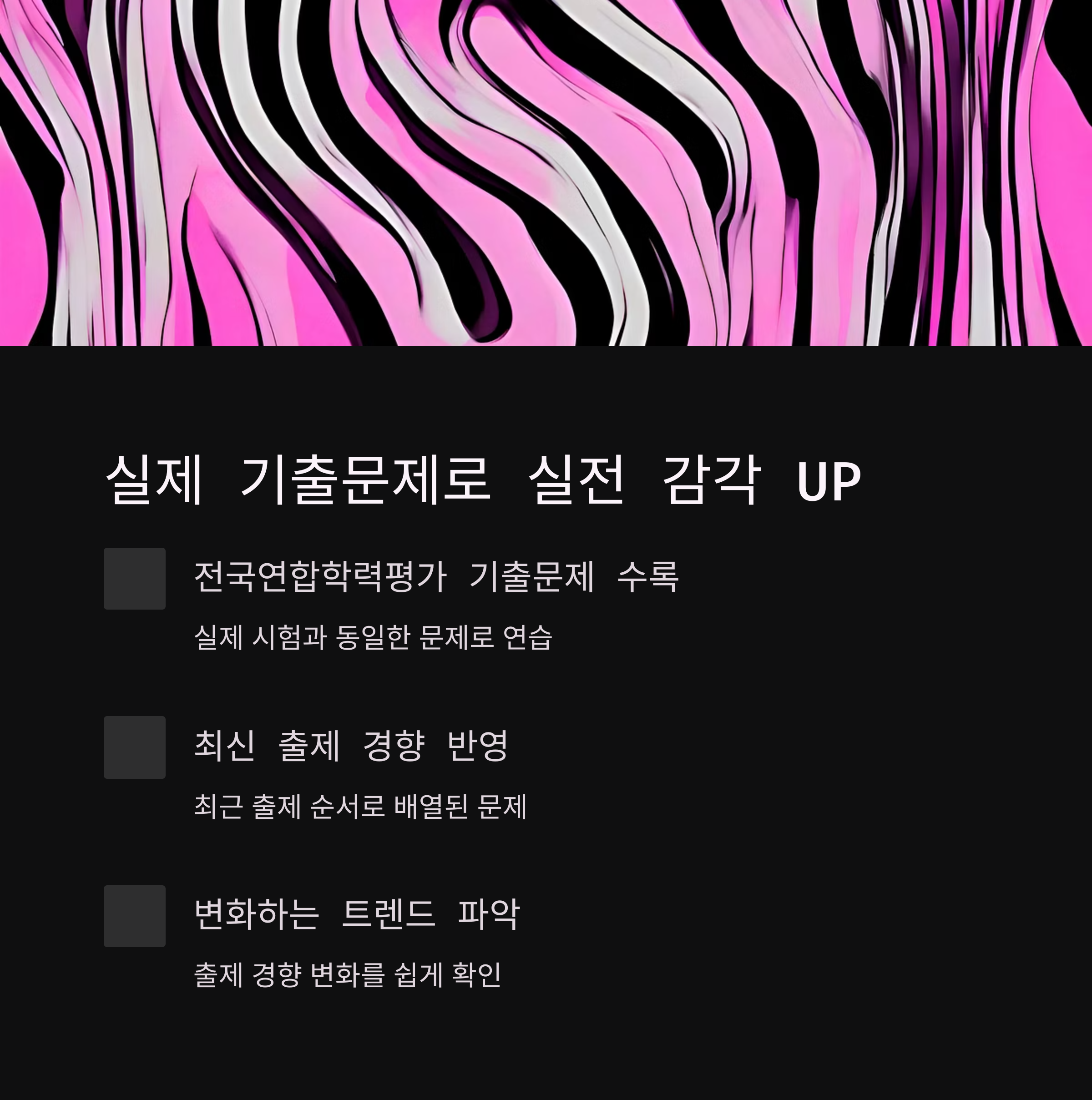 | 문제 구성 | 전국연합 기출문제 기반, 최신 출제 순서대로 배열 |