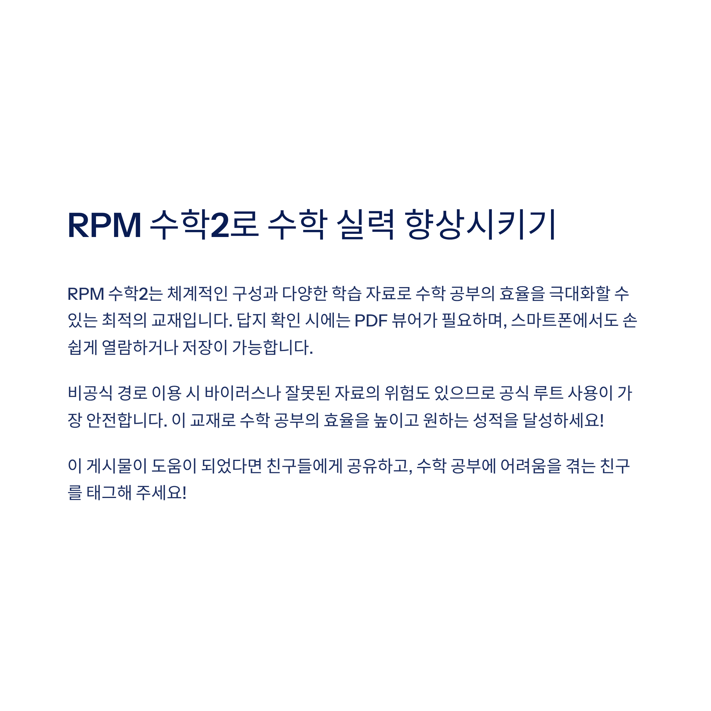 고등학교 수학2 과정을 준비하는 학생들에게 가장 많이 선택되는 교재 중 하나인 RPM 수학2는, 단순한 문제집을 넘어 개념 학습과 실전 감각을 함께 키울 수 있는 체계적인 구조로 설계되어 있습니다. 이 글에서는 RPM 수학2의 핵심 구성, 교재의 장점, 활용법, 그리고 답지 다운로드 방법까지 상세하게 소개드립니다.